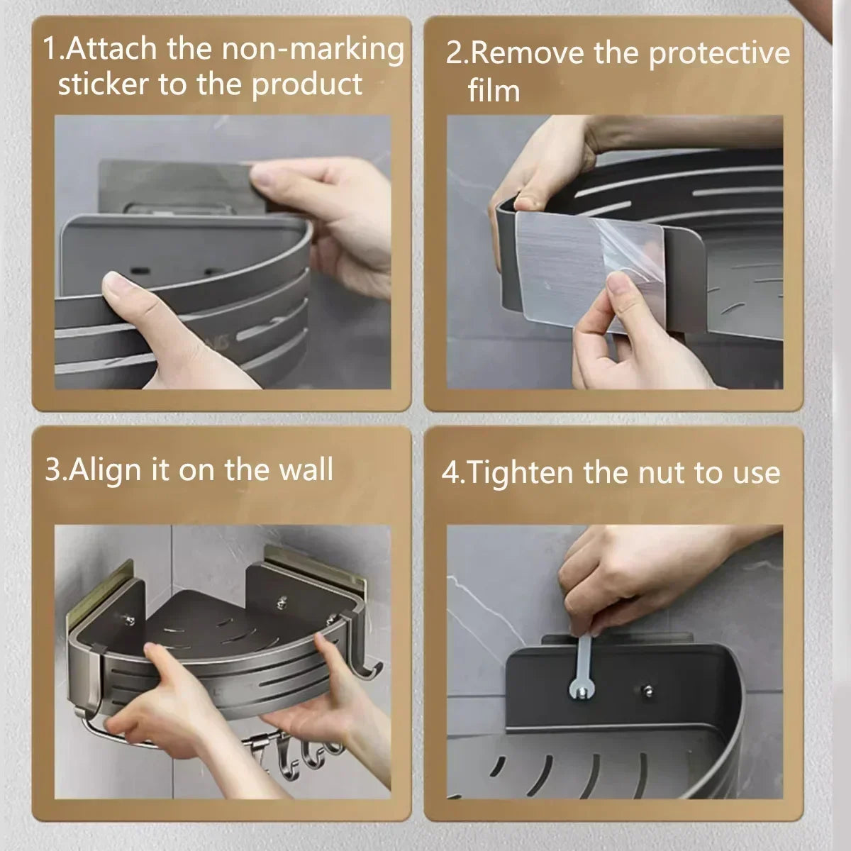 1-2PCS Shower Corner Shelf with Towel Bar Hook Space Aluminum Bathroom Shelf Without Drilling Shampoo Holder Bathroom Accessorie