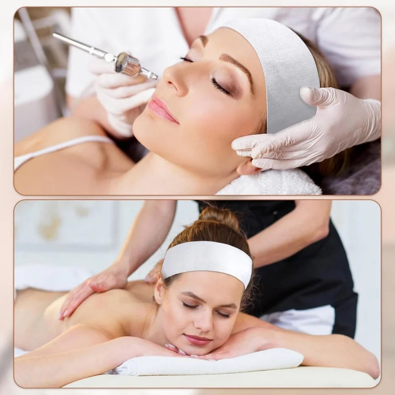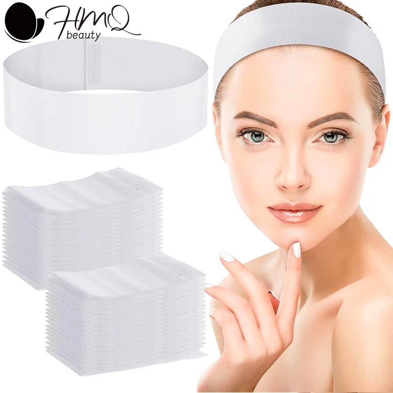 100pcs Disposable Headbands for Facials Spa Stretch Non-Woven Soft Skin Care Hair Bands Women Salons Face Washing Beauty Tools