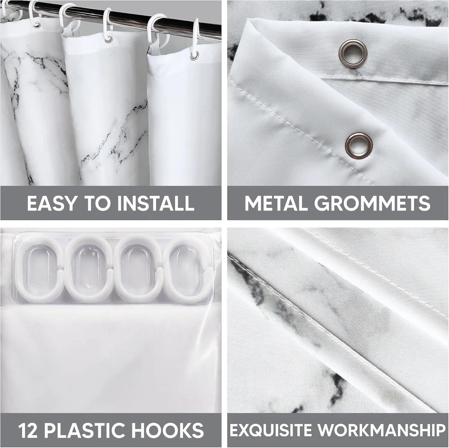 1pc Marble Printed Fabric Shower Curtain with Metal Grommets, Polyester Bath Curtain Widow Curtain Bathroom Decor & Accessories