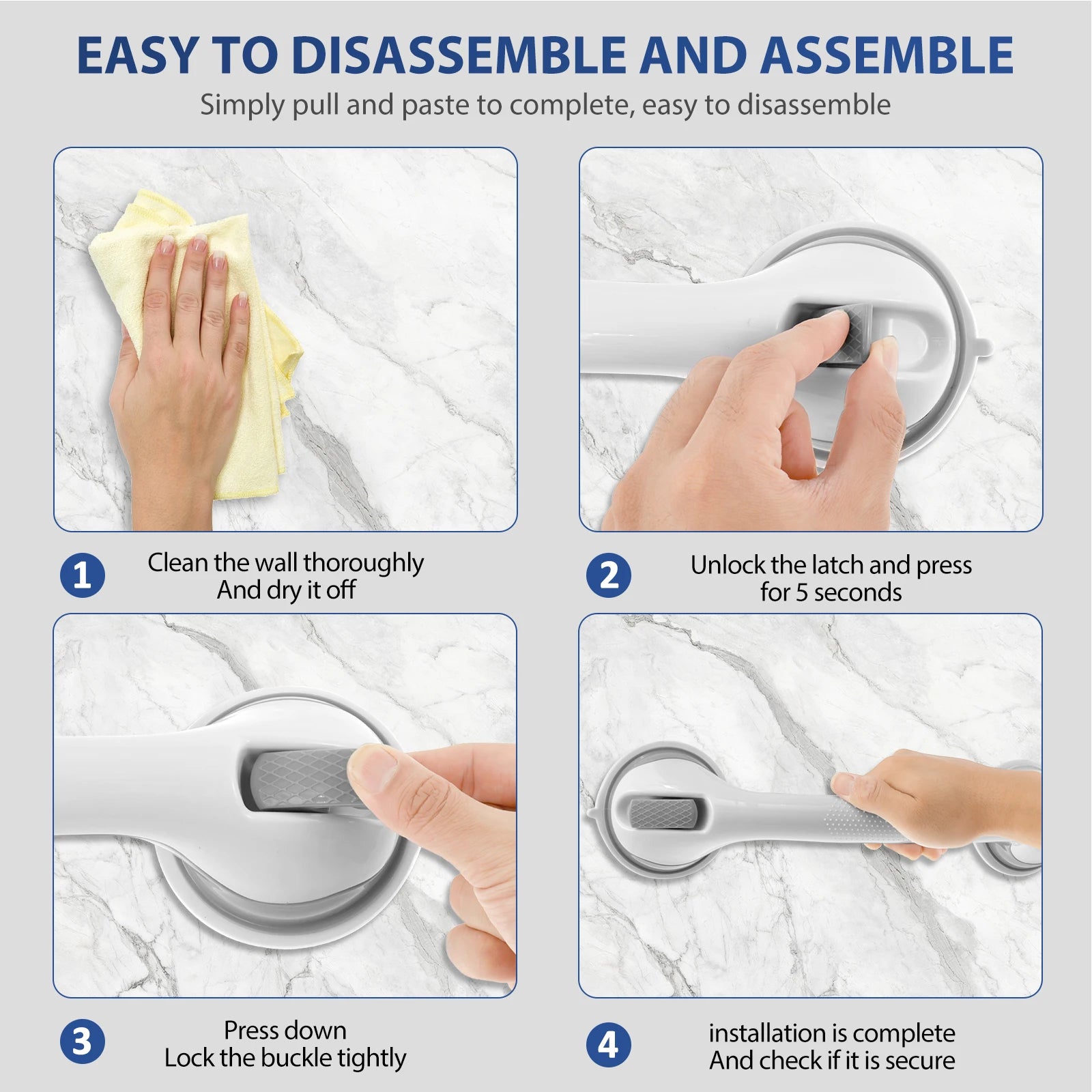 2/4Pcs Showers Grab Bars Free Punch Bathroom Handle Anti Slip Safety Suction Cups Bathtub Grab Bar For Elderly Children Support