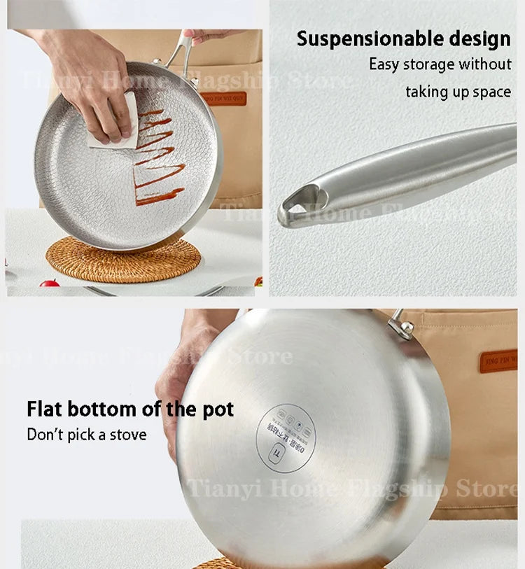 20/24/28cm Frying Pan Non-stick Wok Titanium Stainless Steel Home Egg Steak Skillet Induction Cooker Gas Stove Kitchen Cookware