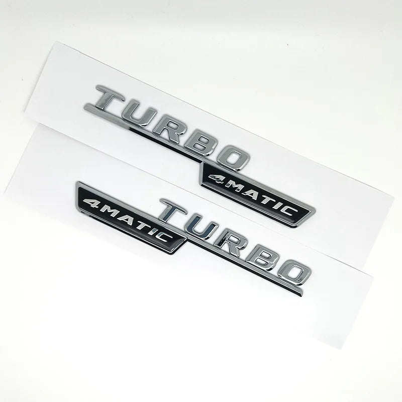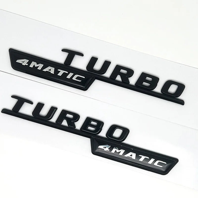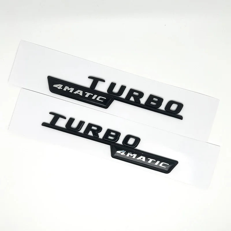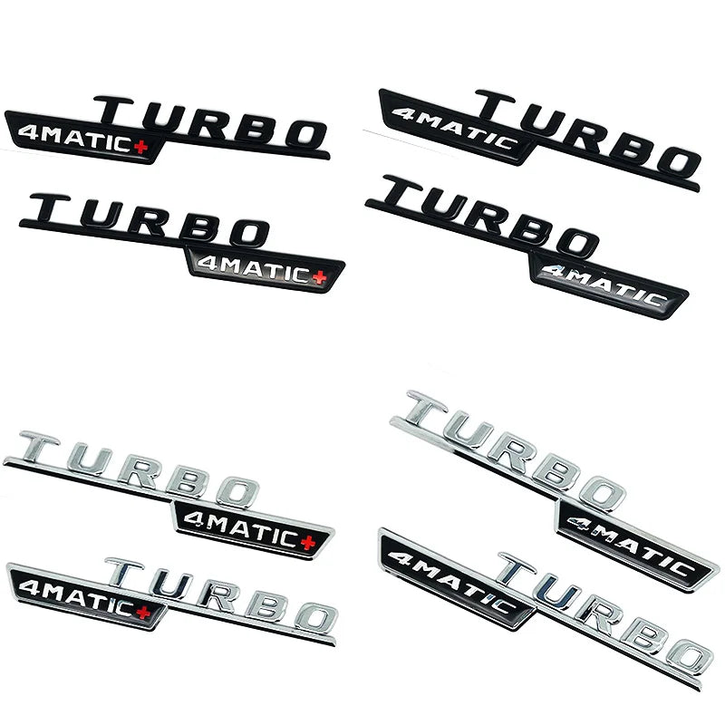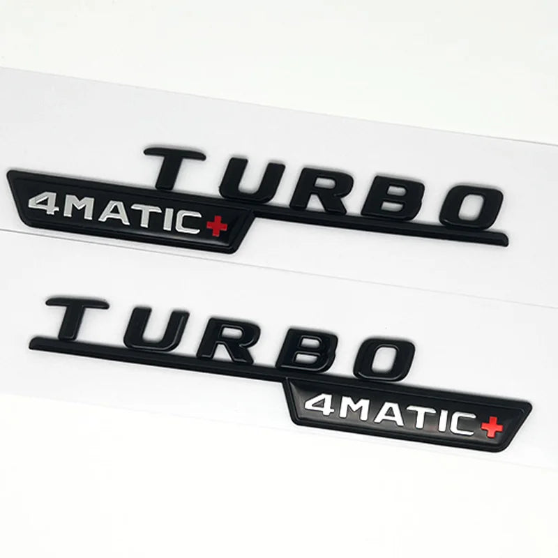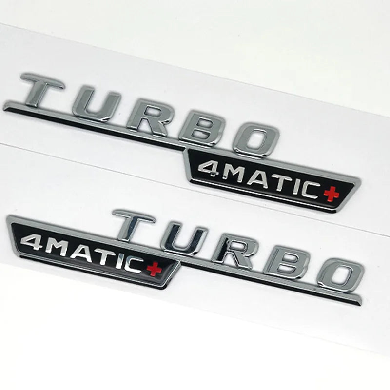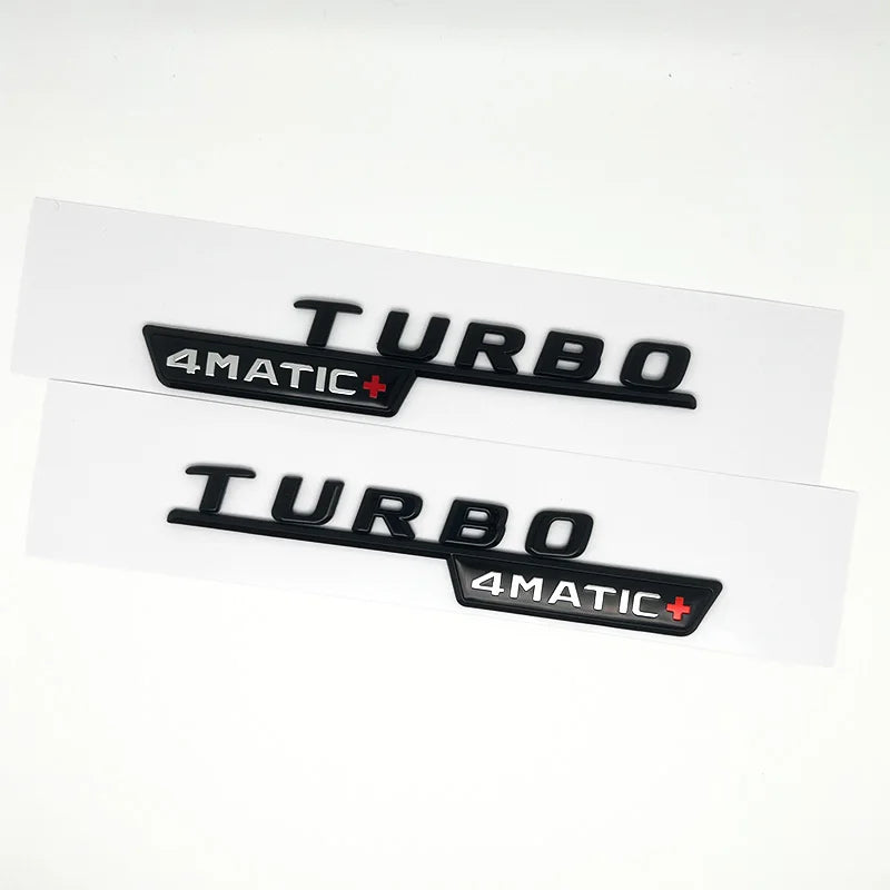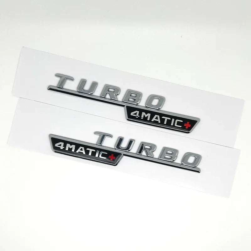 2pcs Car Letters Fender Trim Badge Turbo 4matic Plus Emblem Sticker For Mercedes AMG A45 CLA45 C117 GLA45 GLE53 X247 Accessories