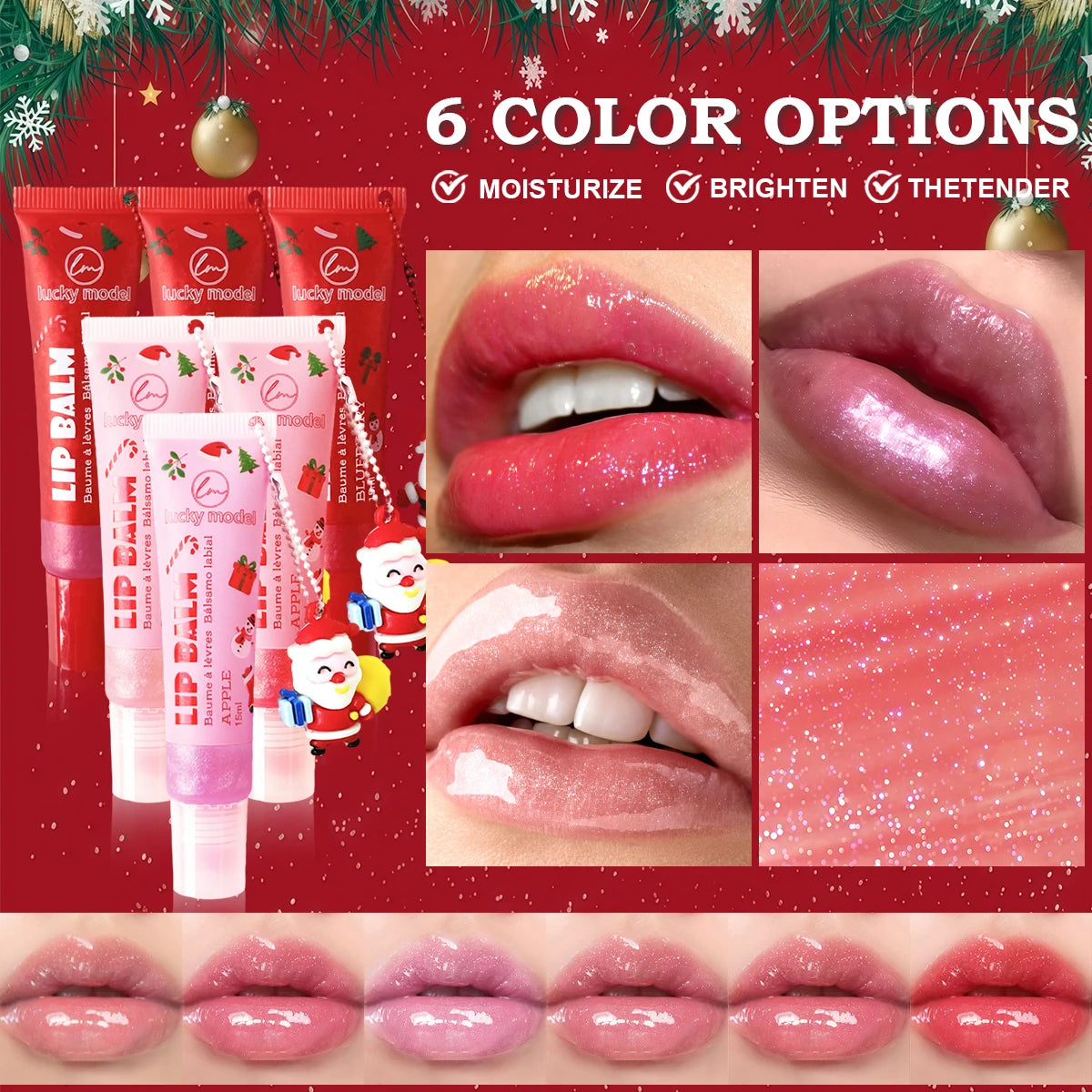 6 Colors Random Hair Moisturizing Fruit Scent Lip Gloss Long-Lasting Waterproof Liquid Lipstick Makeup Christmas Gift