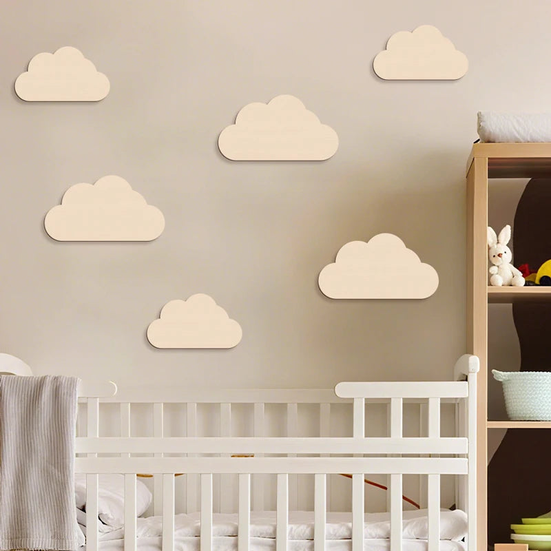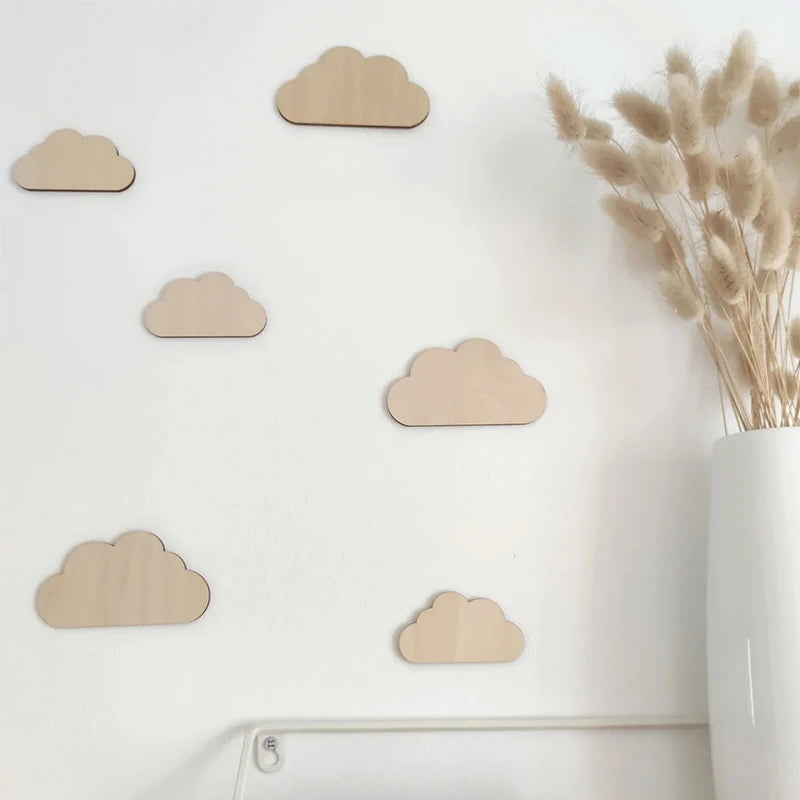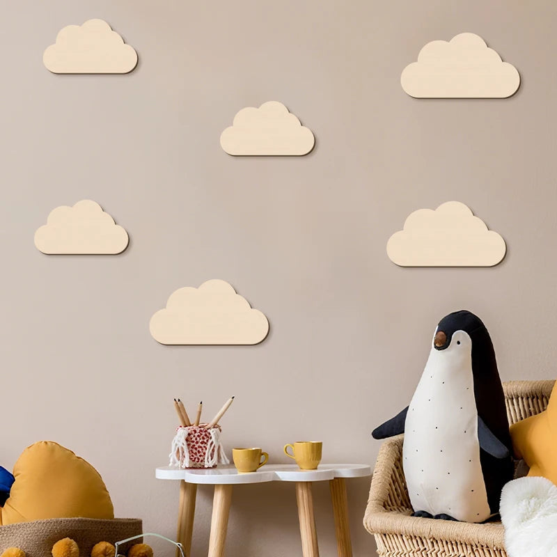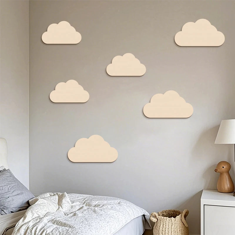 6Pcs Cloud Wall Sticker Wooden Clouds Wall Decor Reusable Wall Decoration for Bedroom Kid's Room Wall Art Wall Decorations