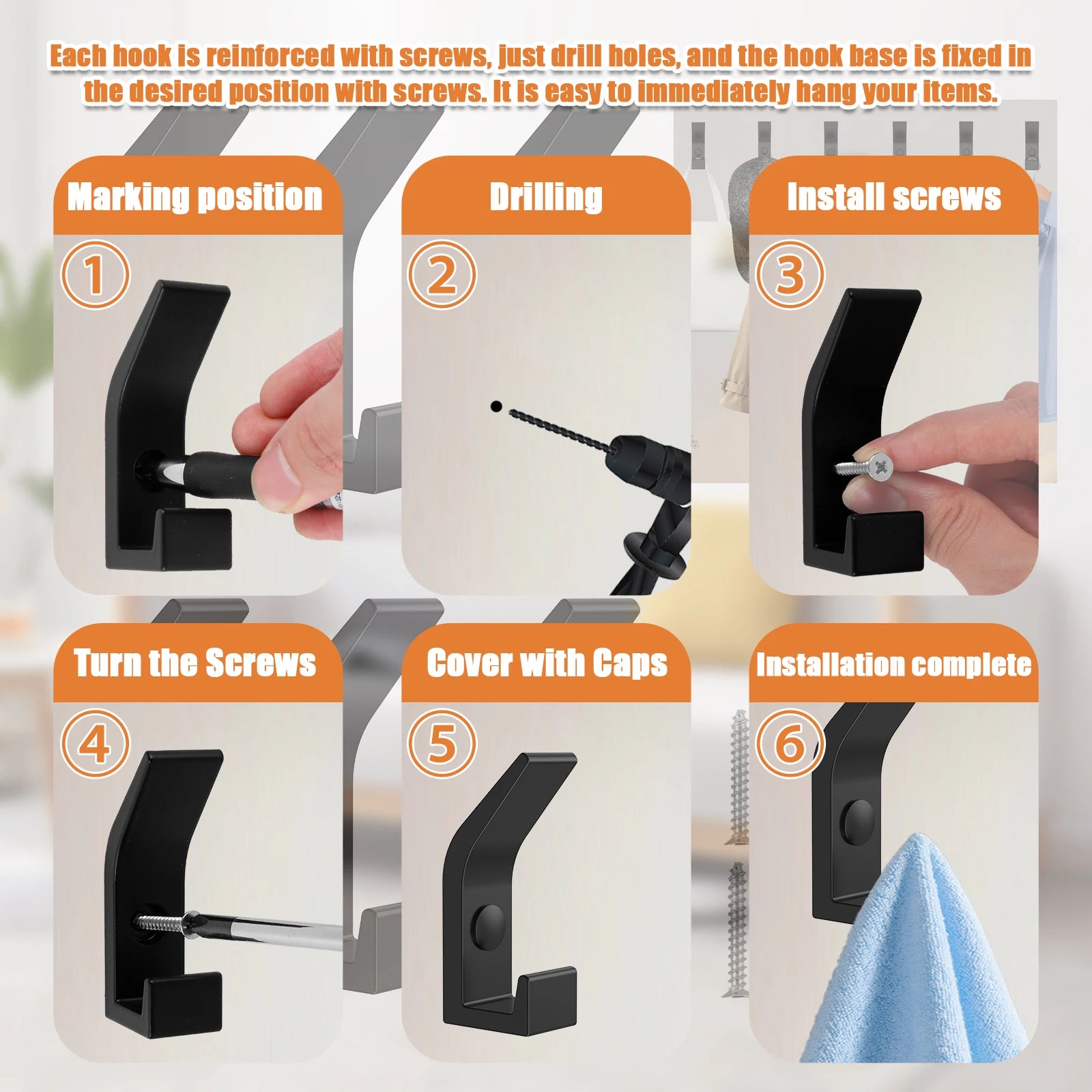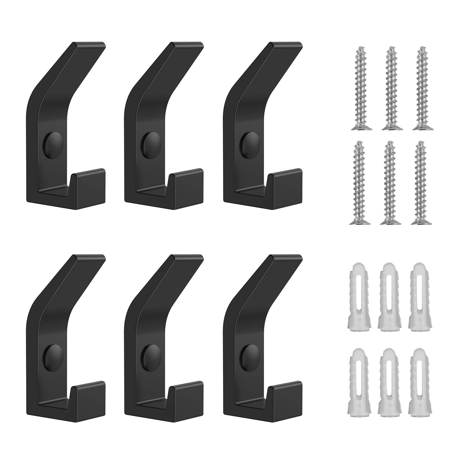 6PCS Heavy Duty Hook 22lbs Load Capacity Space Aluminum Towel Hook Clothes Coat Hook for Bathroom Kitchen Bedroom