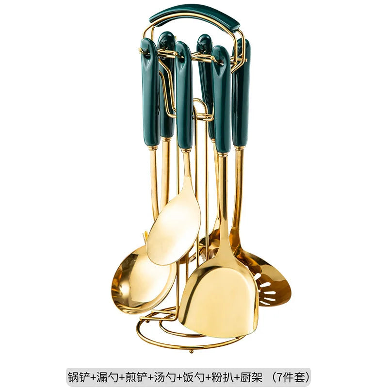 7pcs stainless steel spatula soup spoon kitchenware set cooking spatula kitchen supplies ceramic handle Nordic kitchen tools