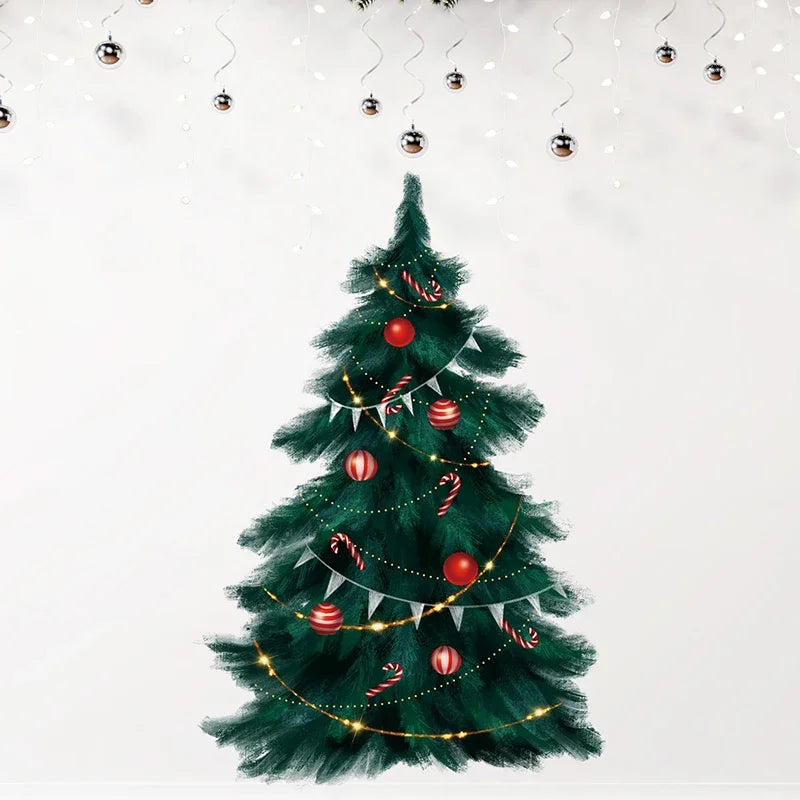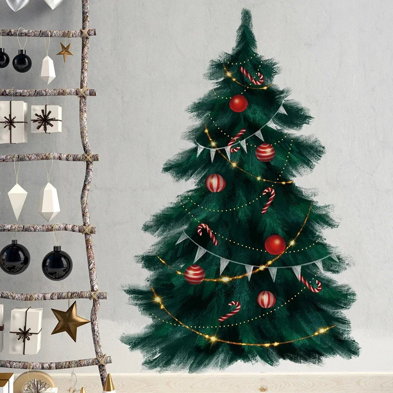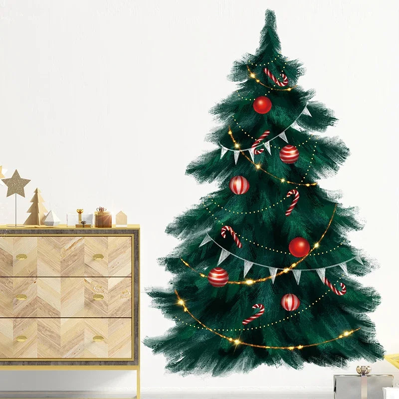 95cm Tall Large Deep Green Christmas Tree Merry Christmas Wall Stickers for Living Room Bedroom Kitchen Festival Decorative PVC