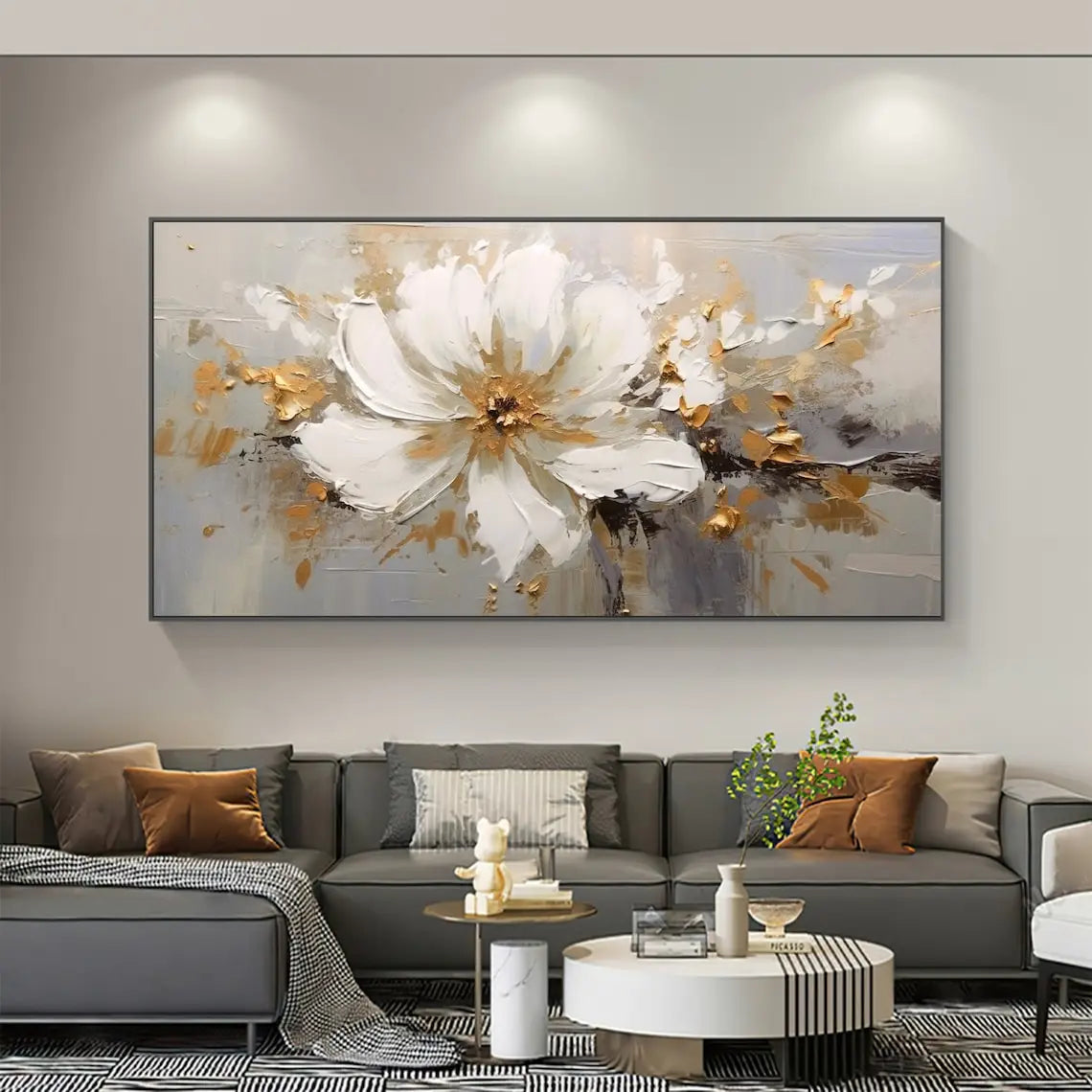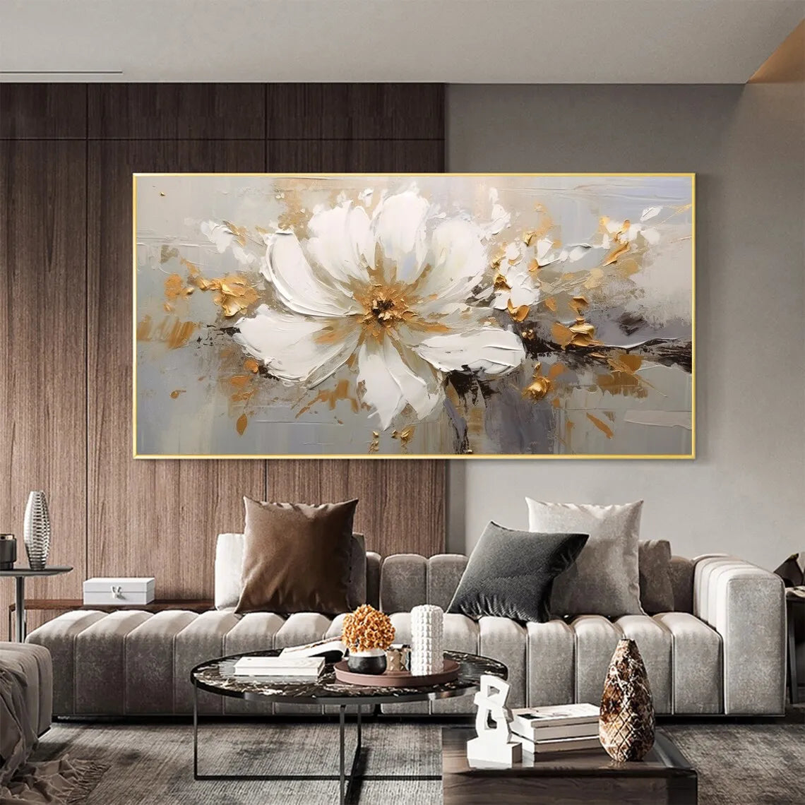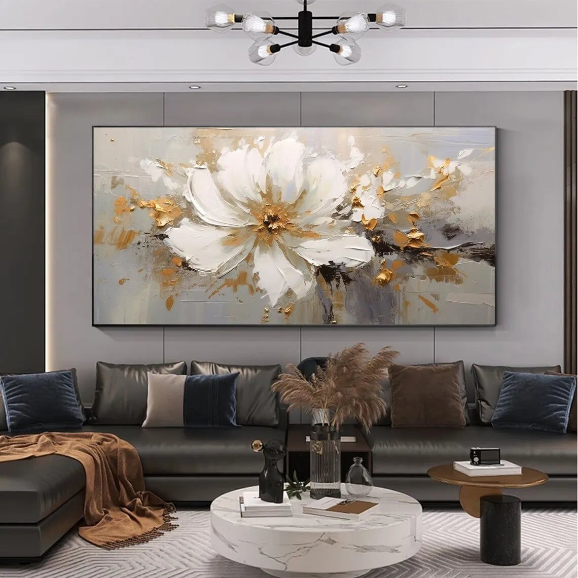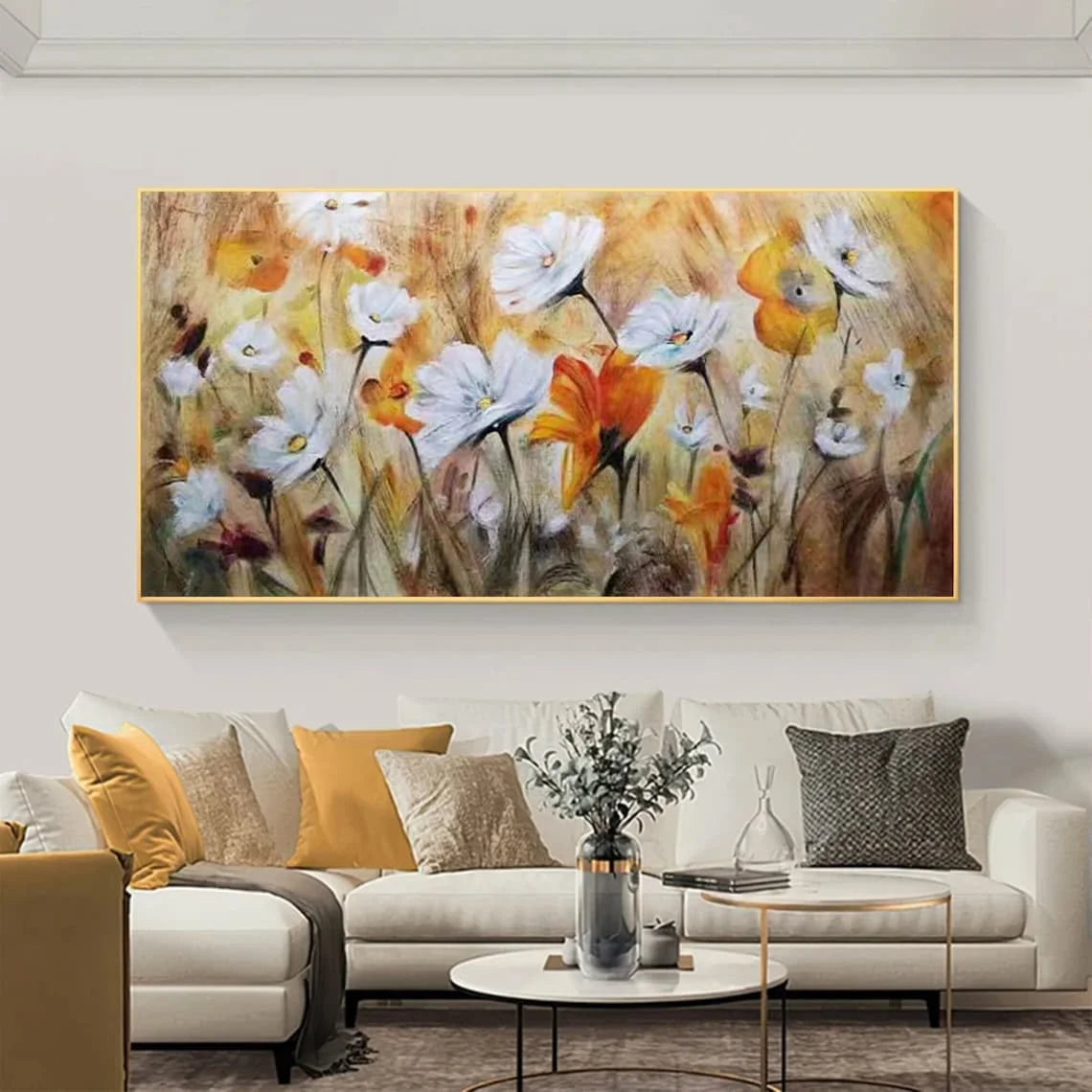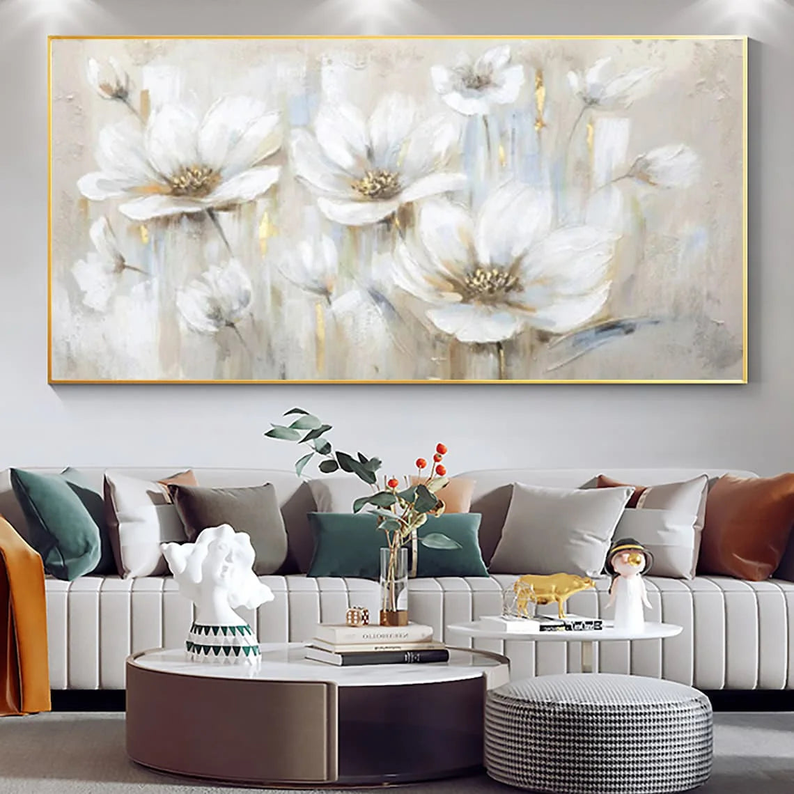 Abstract Flower Oil Painting on Canvas Large Wall Art Minimalist Floral Art Custom handmade Painting White Decor For Living Room
