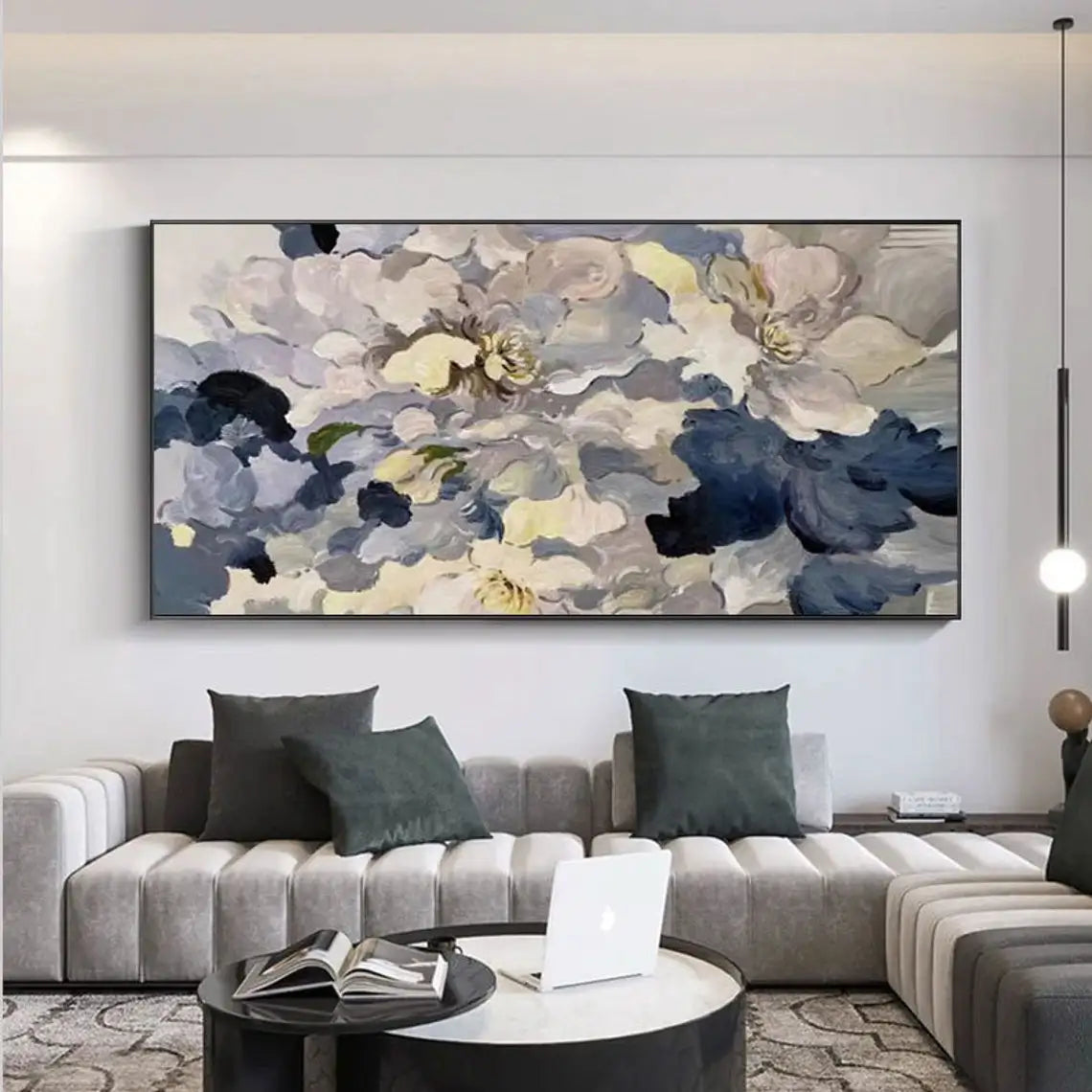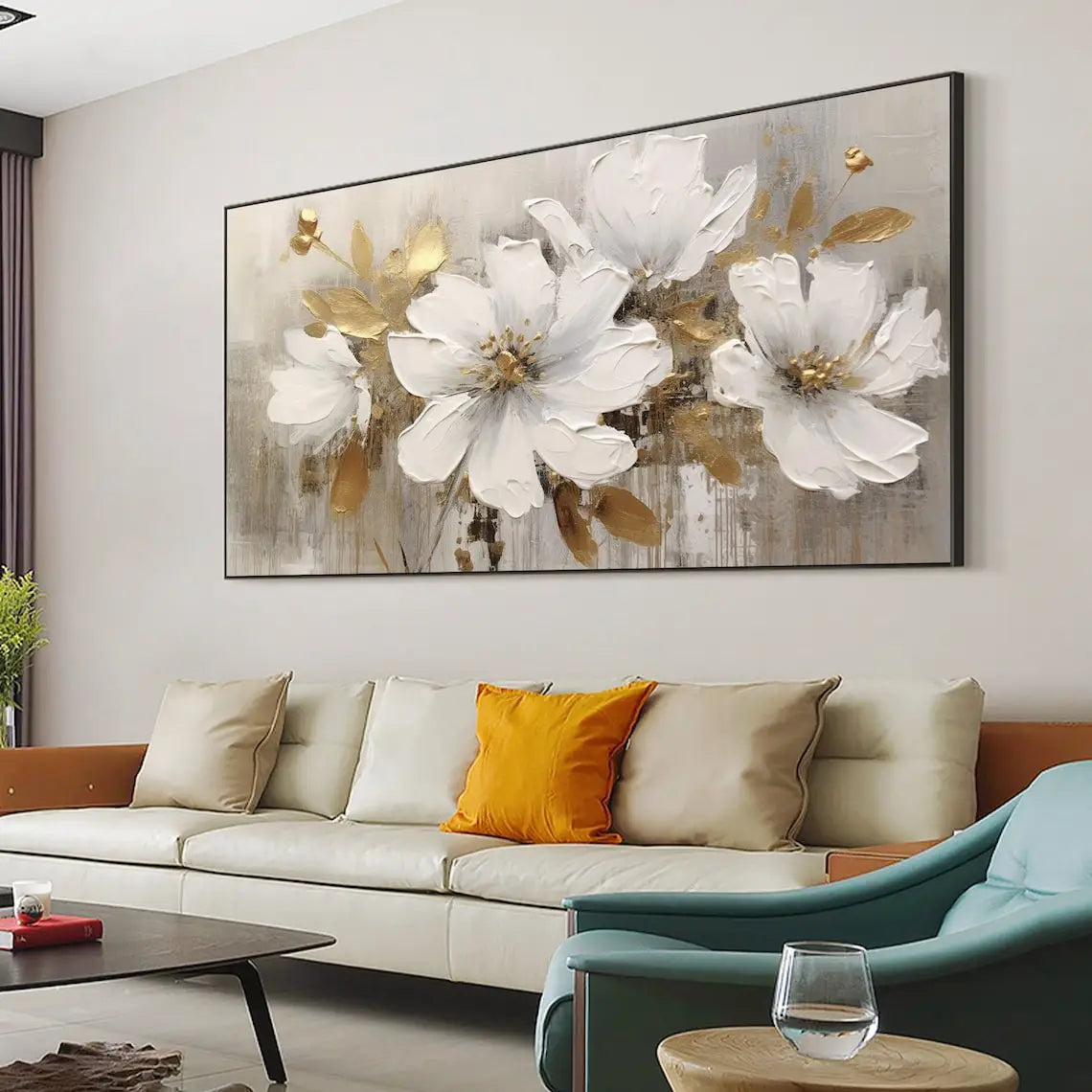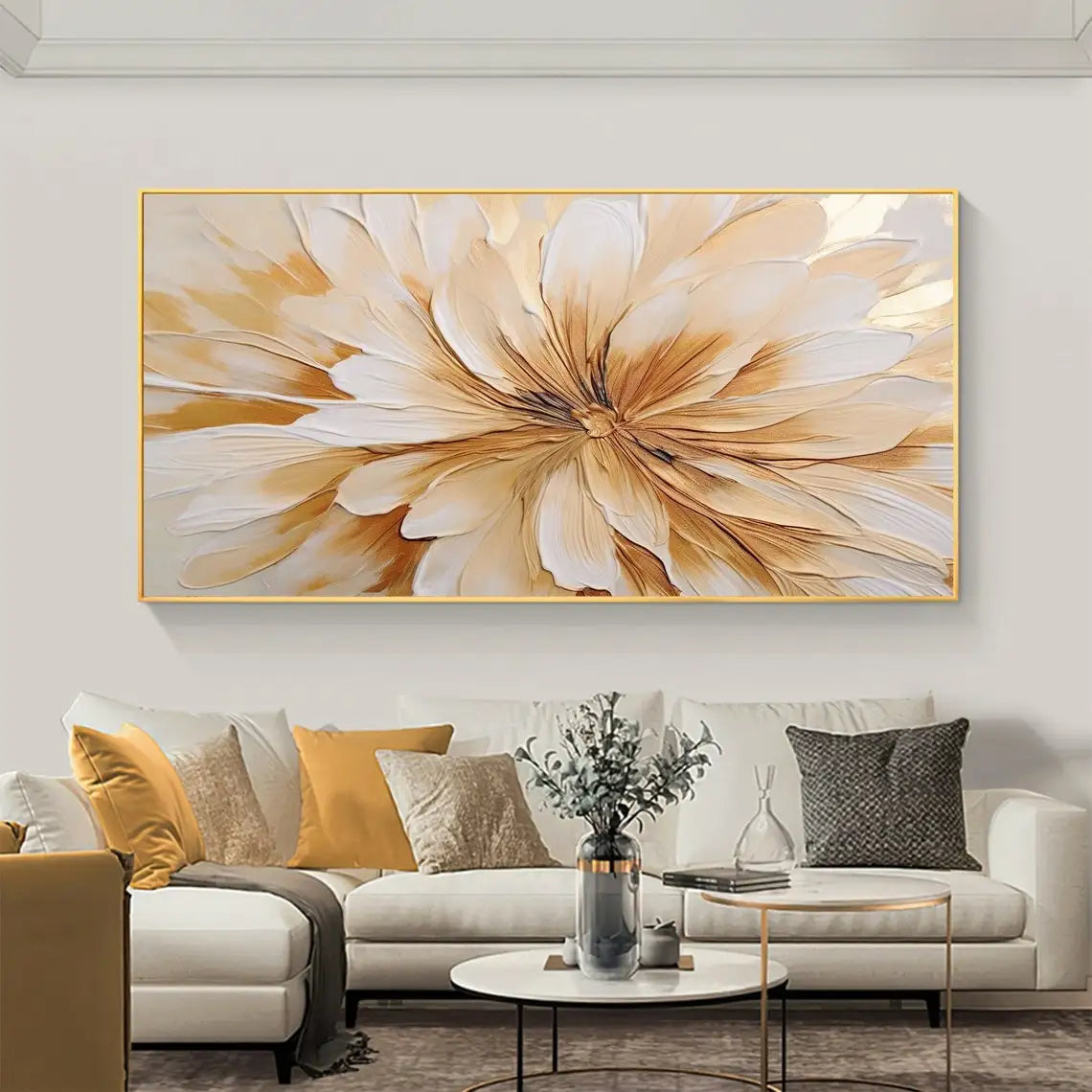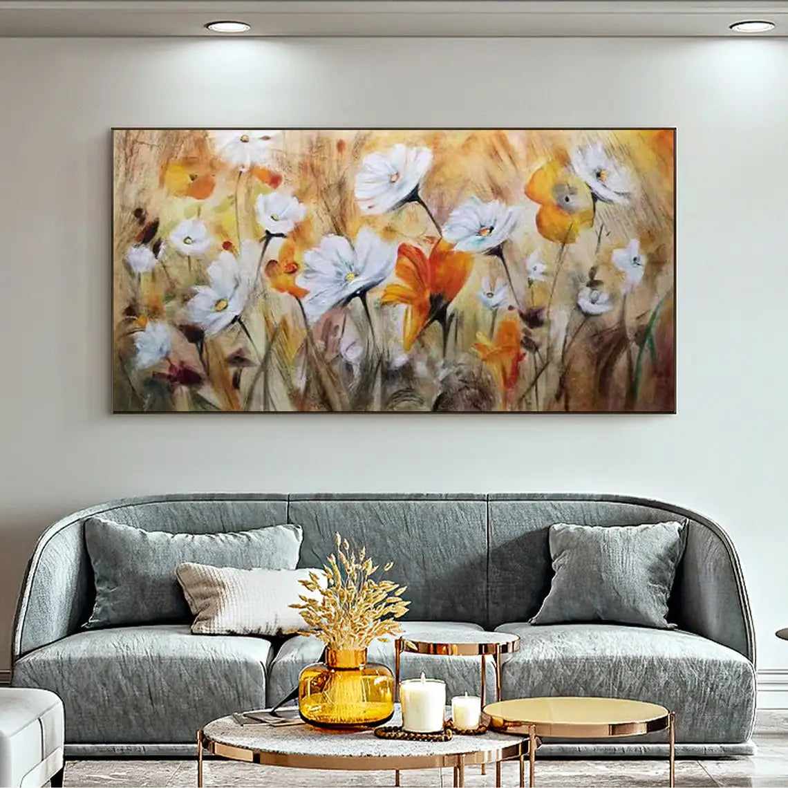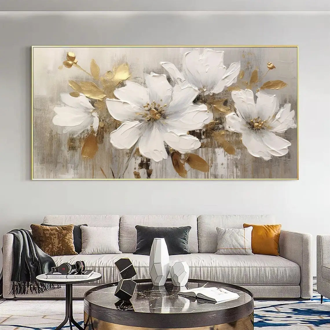 Abstract Flower Oil Painting on Canvas Large Wall Art Minimalist Floral Art Custom handmade Painting White Decor For Living Room
