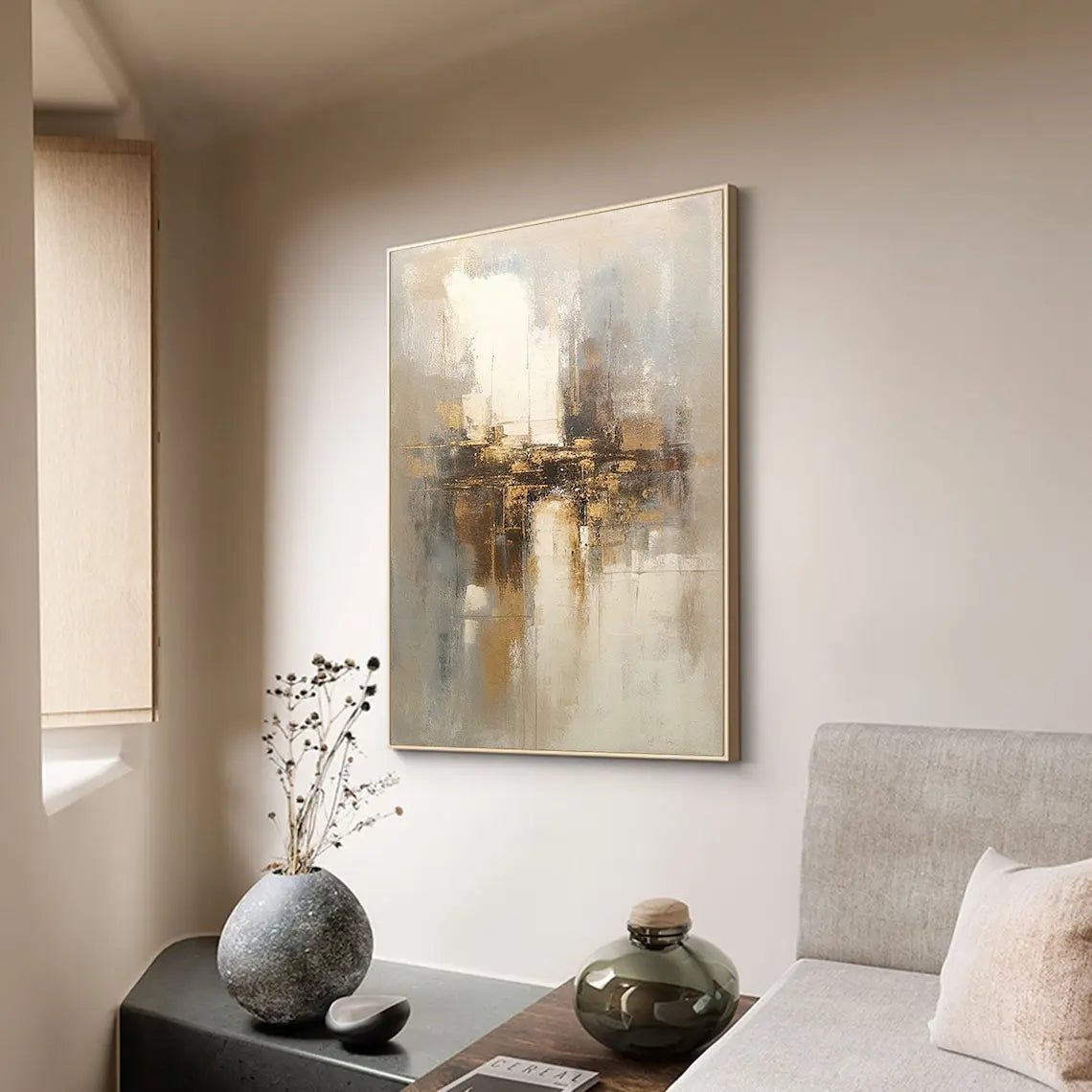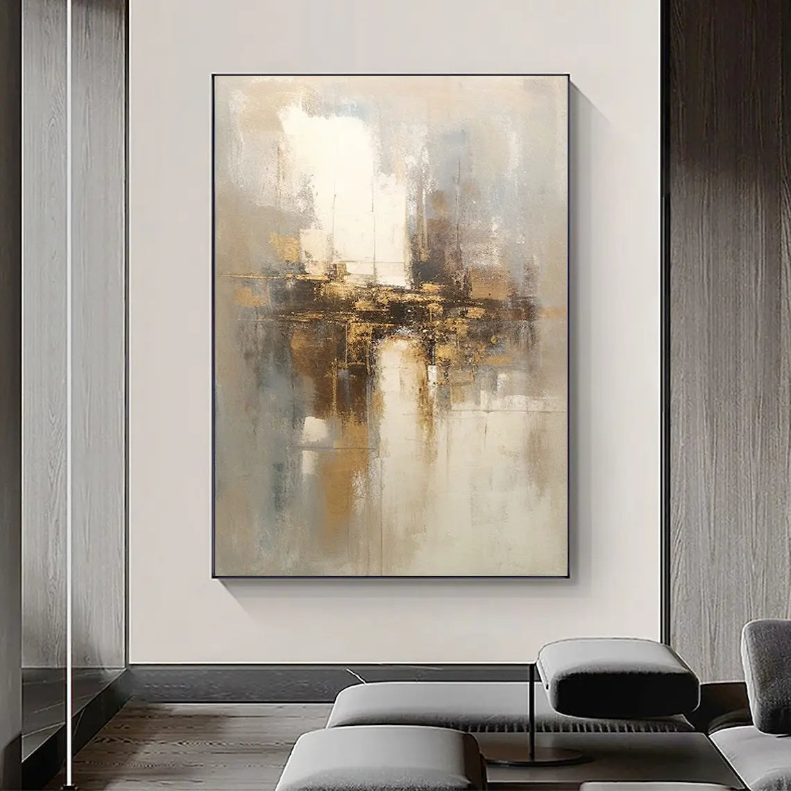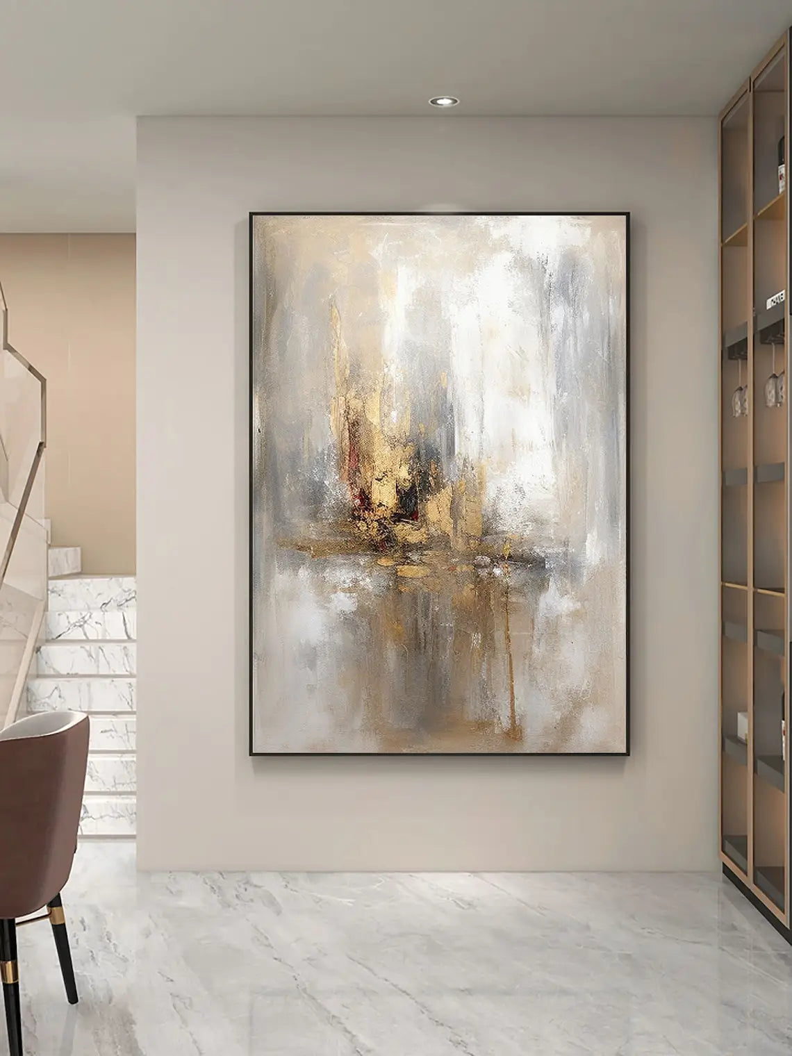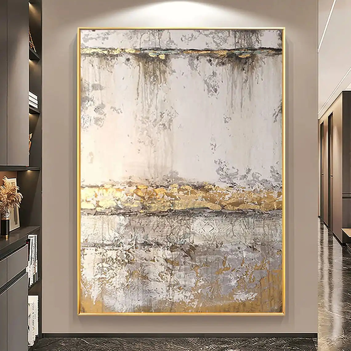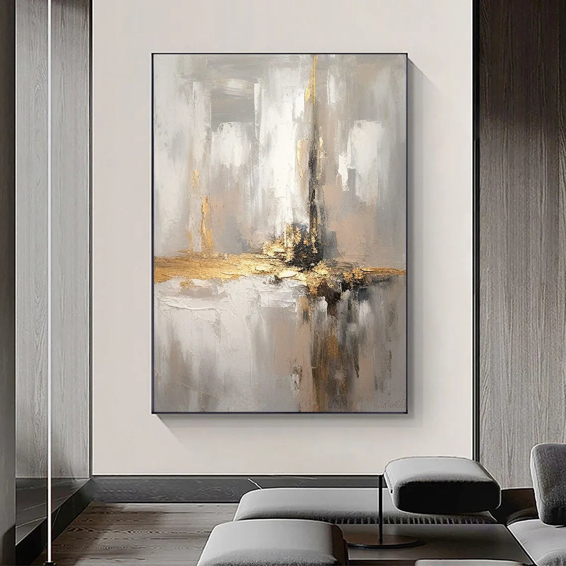 Abstract Gold Beige Handmade Oil Paintings Oil Painting Art Abstract Wall Decor Modern Art Gray Abstract Art Gold Foil Pictures