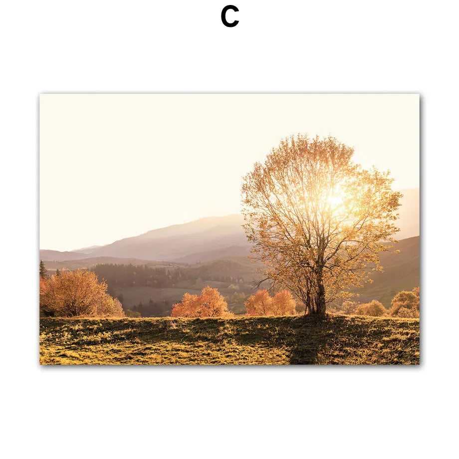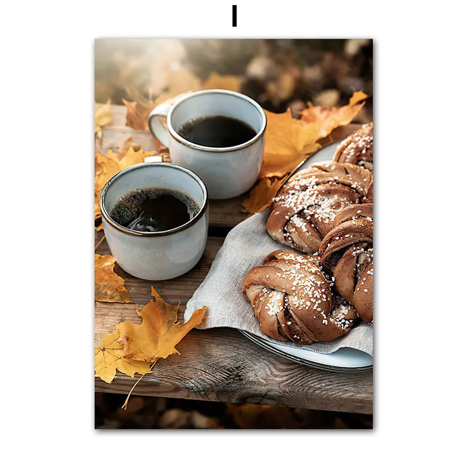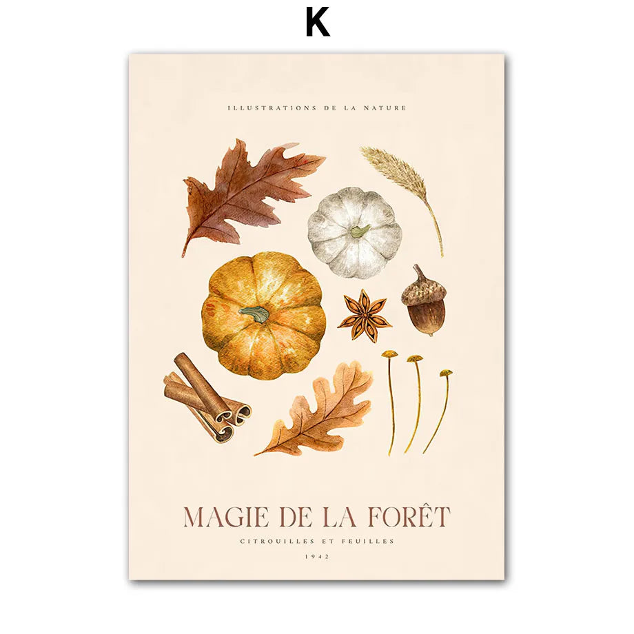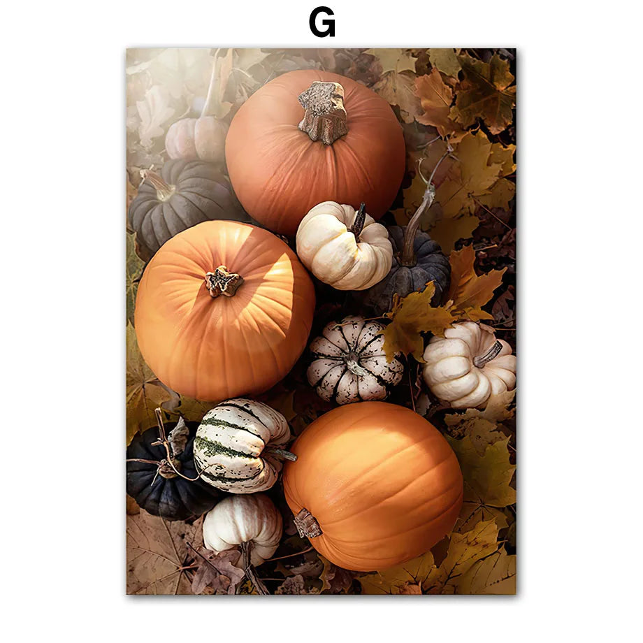 Autumn Scenery Wall Art Print Pumpkin Tree Grass Fox Canvas Painting food Poster Restaurant Kitchen Pictures Living Room Decor