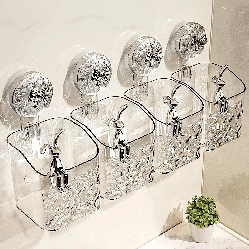 Bathroom Shelf Wall Mounted Non Perforated Suction Cup Storage Basket With Glacier Pattern For Home Storage Products