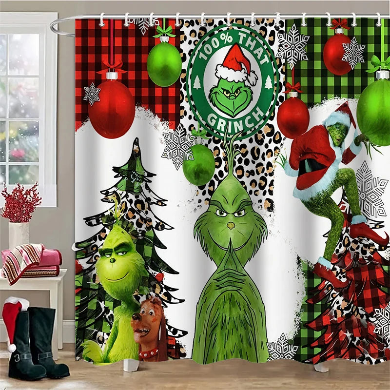 Christmas Cartoon Bathroom Shower Curtain Waterproof fabric bathroom Curtain With 12 Hooks Sunflower Home Deco Free Ship