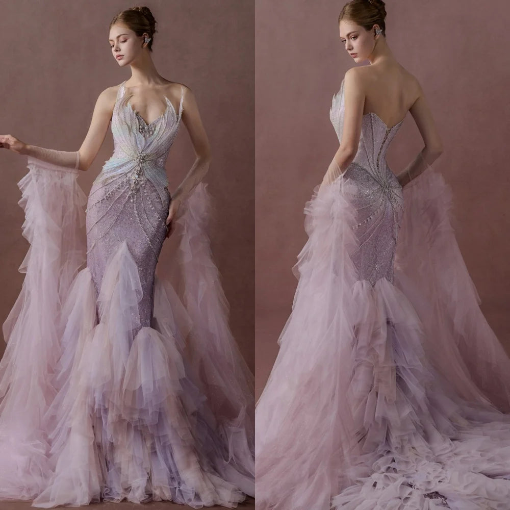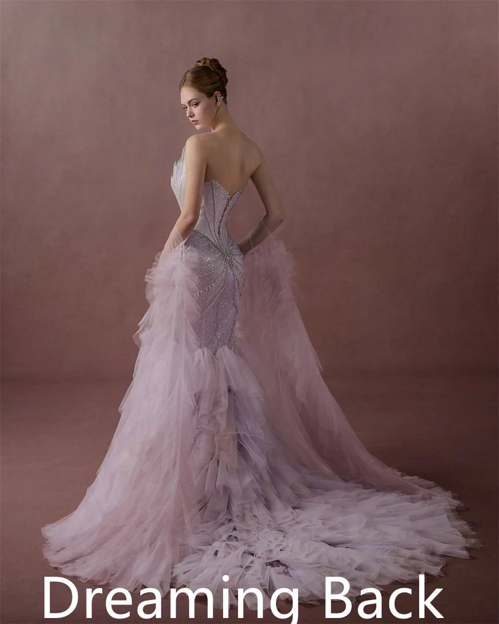 Customized Temperament Pink Tulle Homecoming Dress Luxury Strapless Detachable Sleeve Beading Backless Vestido De Noche