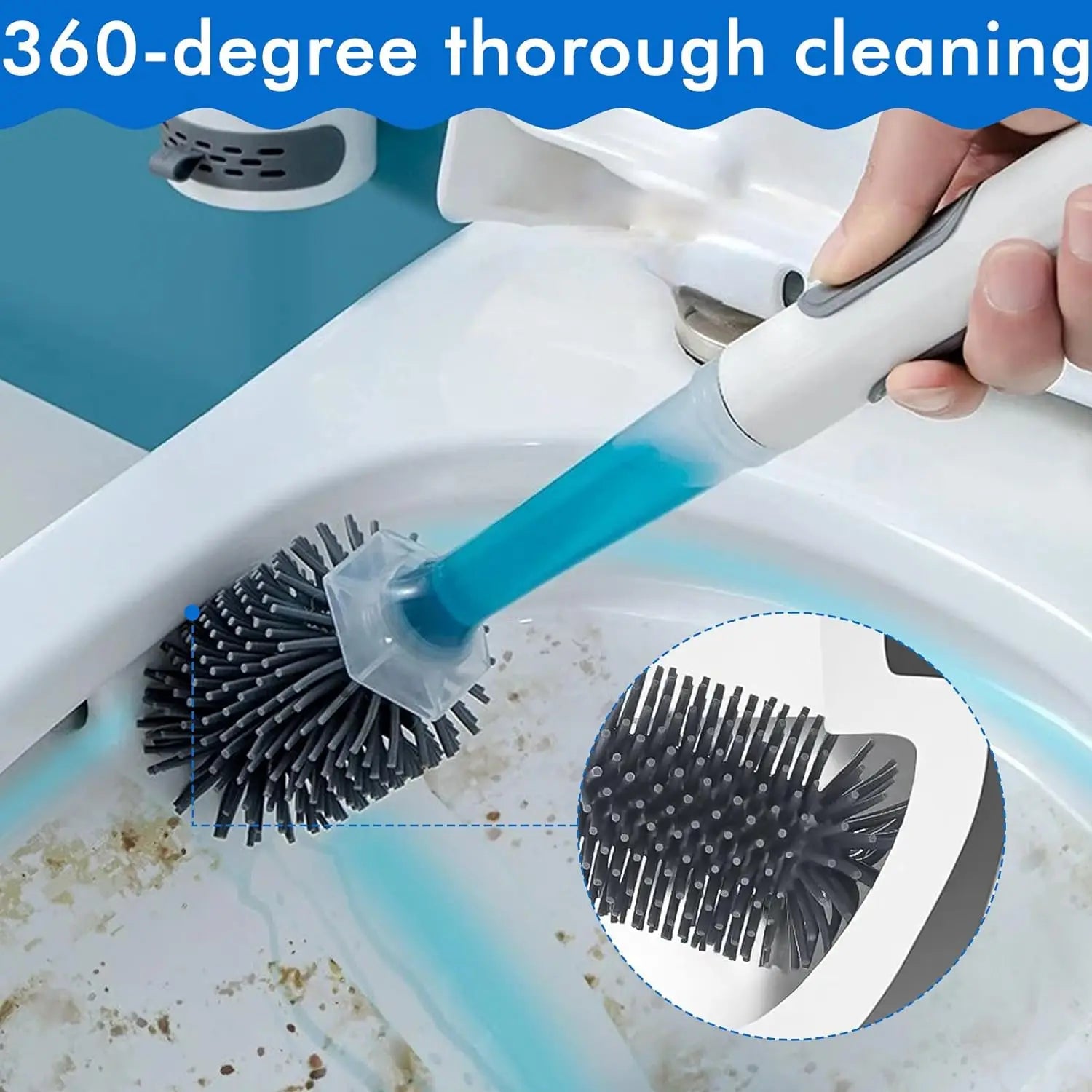 Detergent Refillable Toilet Brush Wall-Mounted Long Handle Silicone TPR Brush for Corner Cleaning Tools Bathroom Accessories