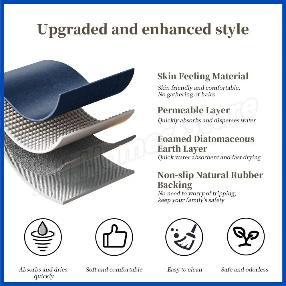 Diatomite Stone Bath Mat Diatomaceous Earth Bath Mat Rug Super Absorbent Non Slip 3.5MM Thickness Bathroom Mat Floor Bathtub Rug