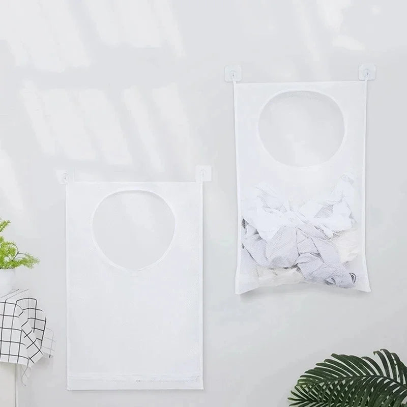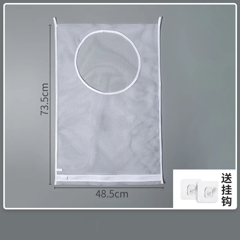 Dirty Clothes Storage Bag Basket Frame Bucket Foldable Mesh Laundry Bathroom Wall Hanging Household Clothing Organizer with Hook