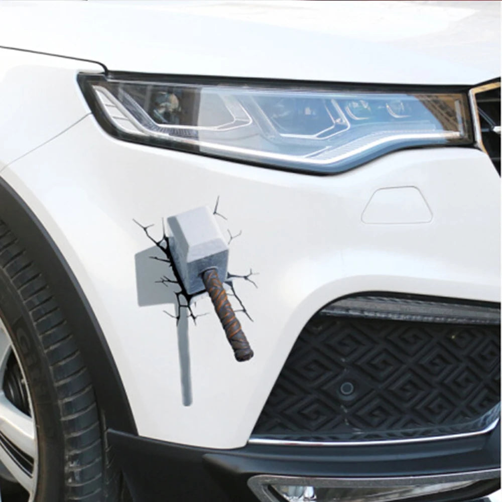 Eye-Catching 3D Crack Hammer Car Stickers for All-Terrain Vehicles Bumper Door Cover Scratches Scooter Body Waterproof Decals
