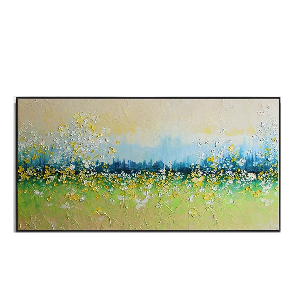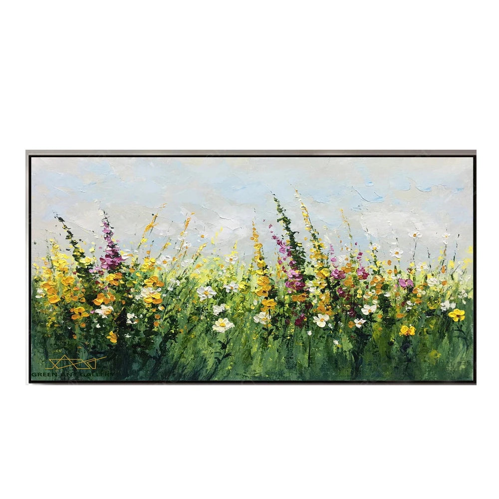 Flower Landscape Oil Painting on Canvas Abstract Green Nature Handmade Painting Living Room Home Decor Large Wall Art Custom Art