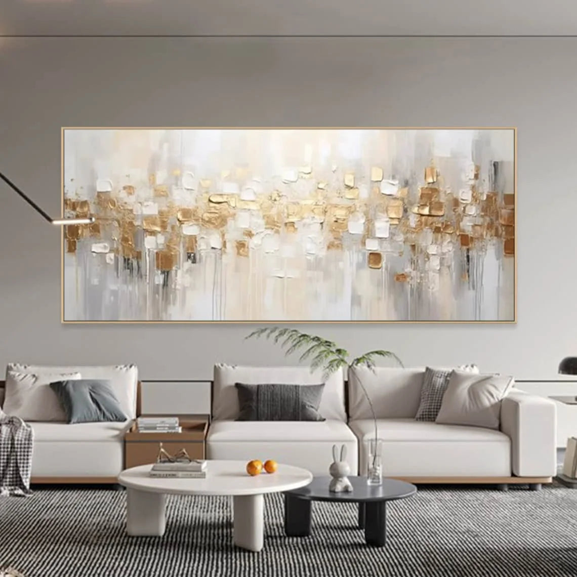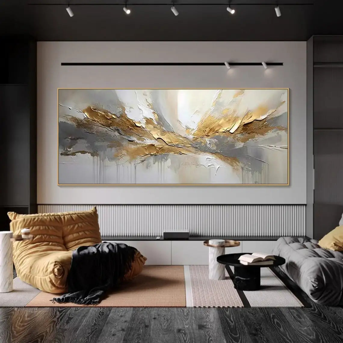 Gold Abstract Painting on Canvas Textured Wall Art Gold Foil Painting Boho Wall Decor Bright painting Large Modern Art Painting
