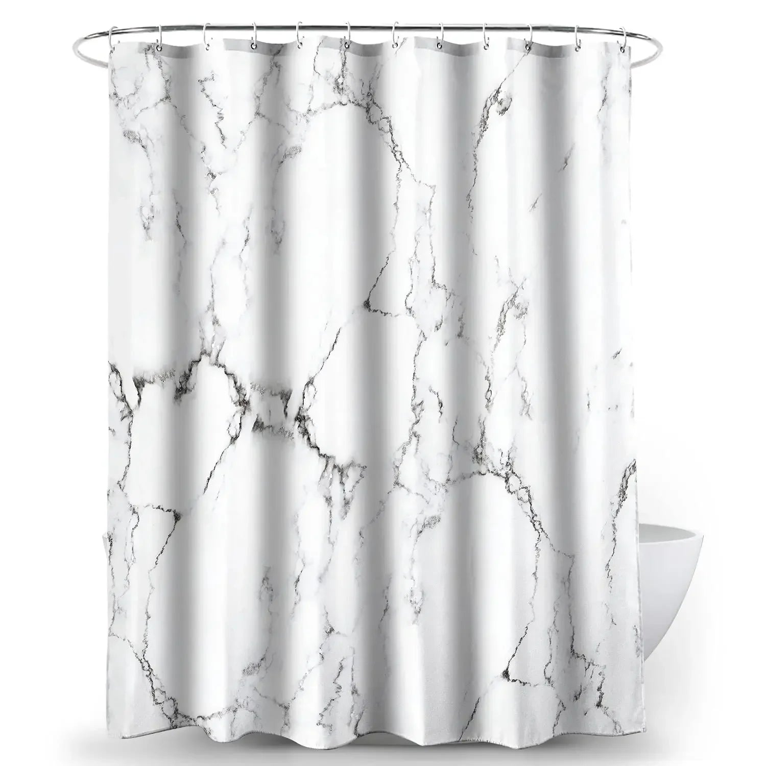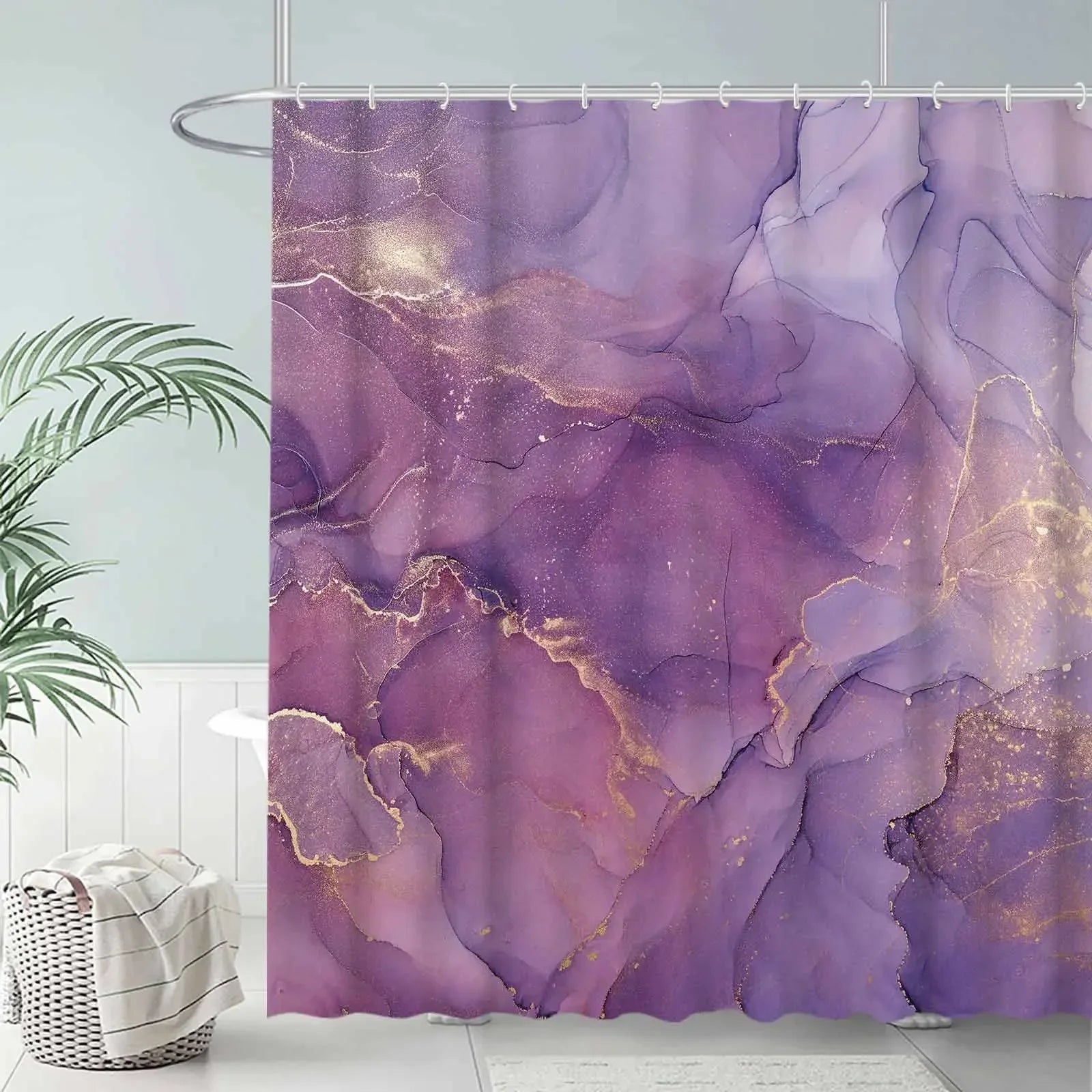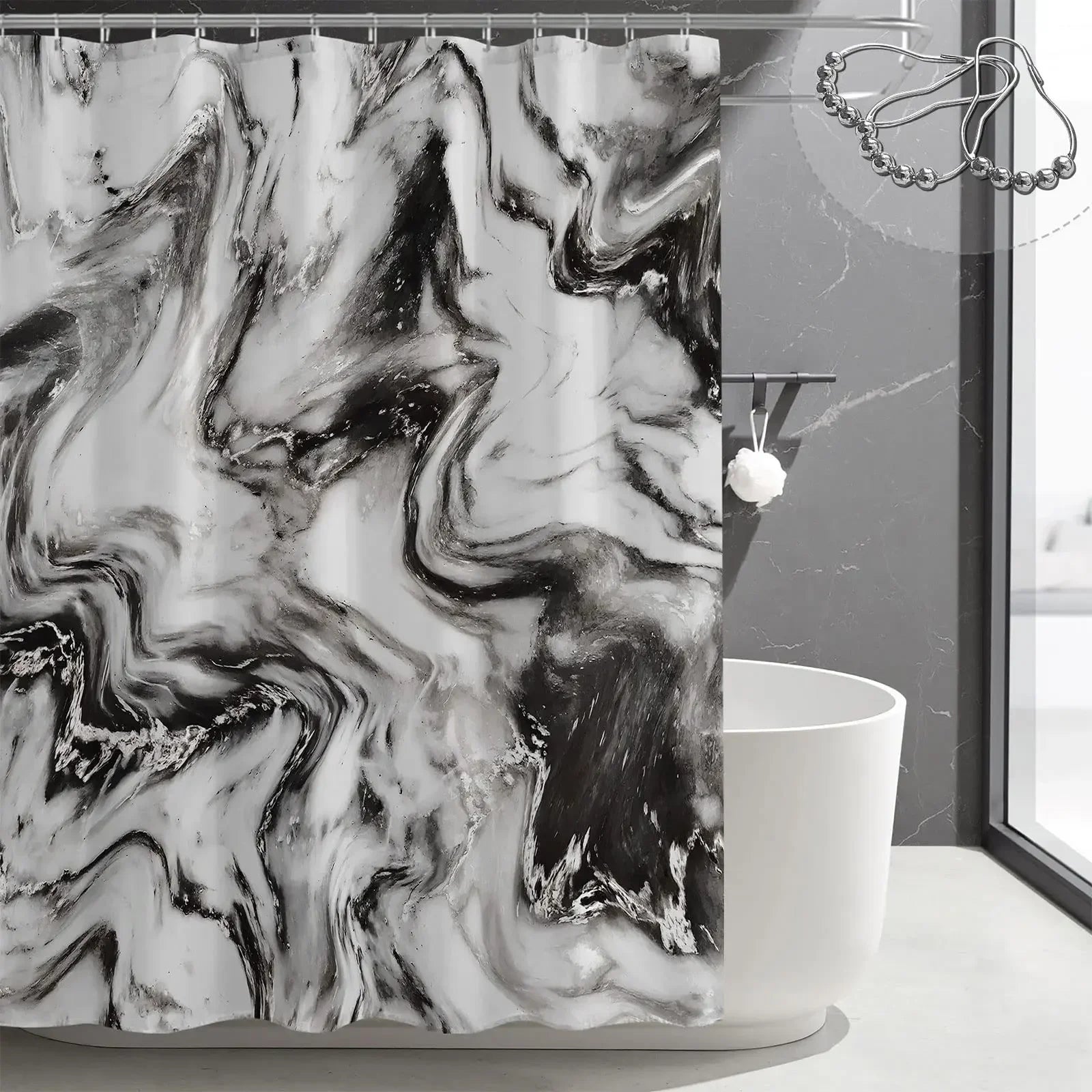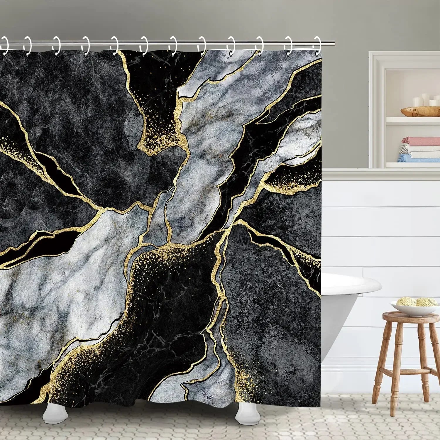Grey Gold Marble Ink Texture Shower Curtain Set Abstract Modern Shower Curtain for Bathroom Decor Waterproof Washable Fabric