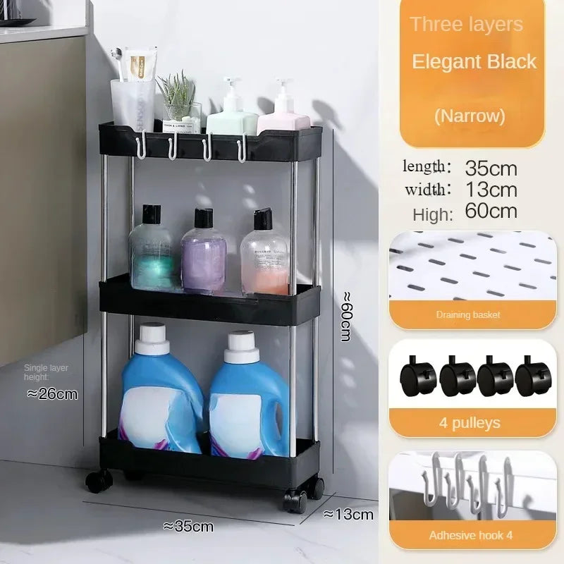 Hot 3/4 Tier Rolling Utility Cart Storage Shelf Movable Gap Storage Rack Kitchen Bathroom Slim Slide Organizer Shelf Livingroom