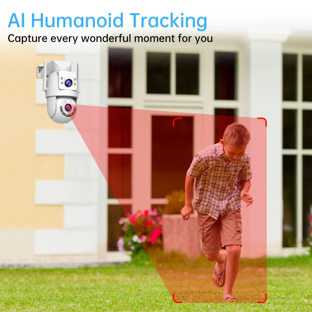Jooan 5K 8MP Dual Lens Dual Screen IP Camera Wifi PTZ Camera Outdoor AI Auto Tracking CCTV HD Audio Video Surveillance