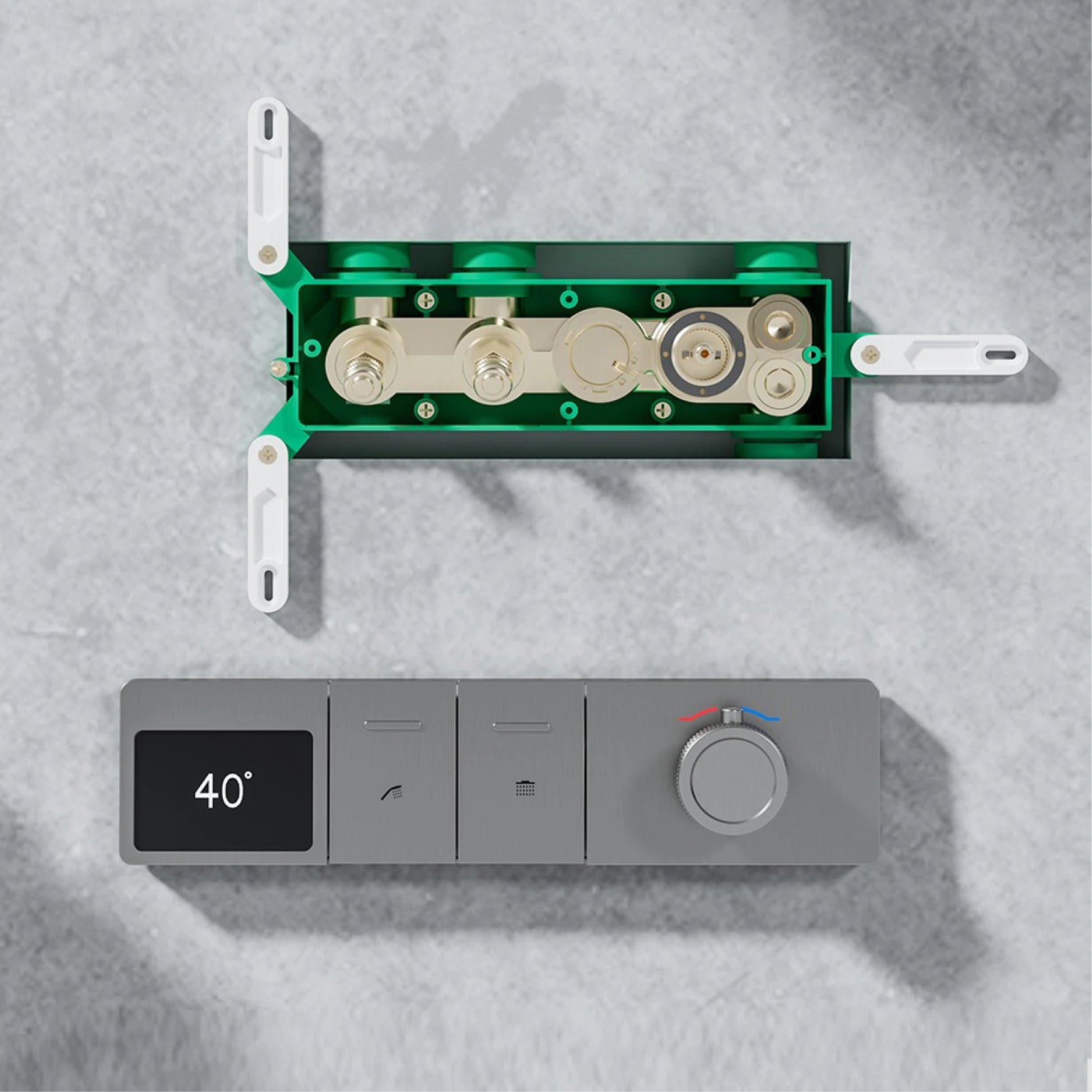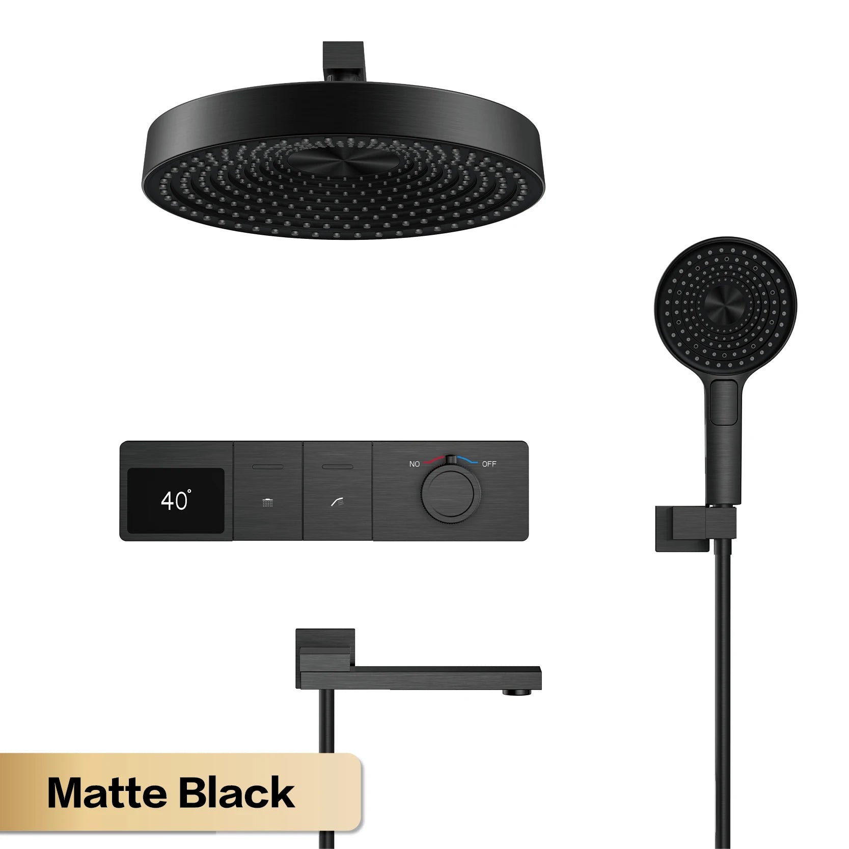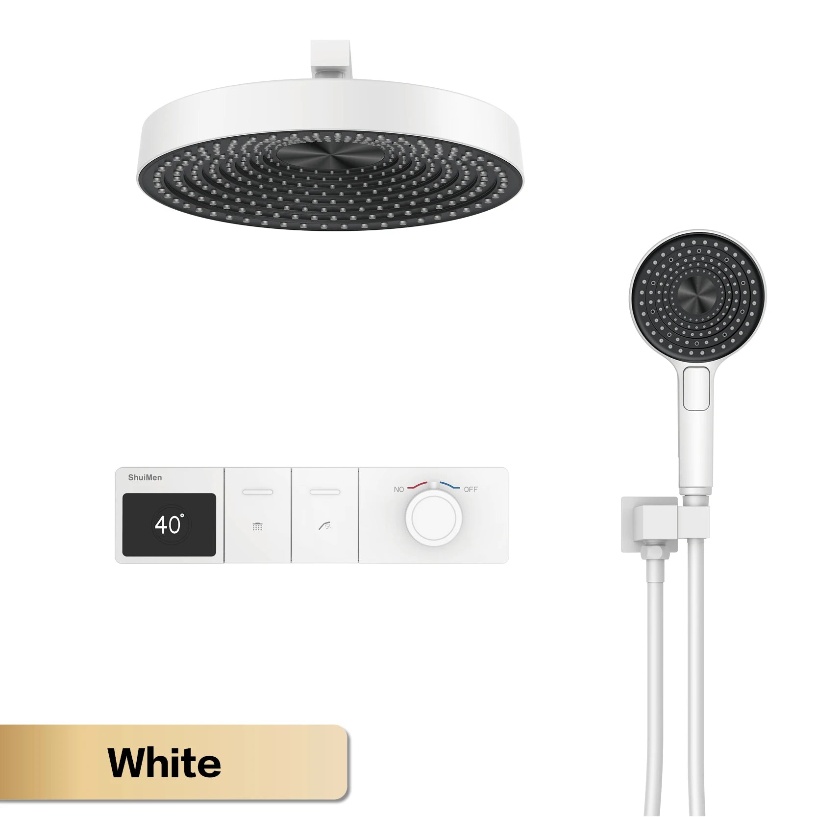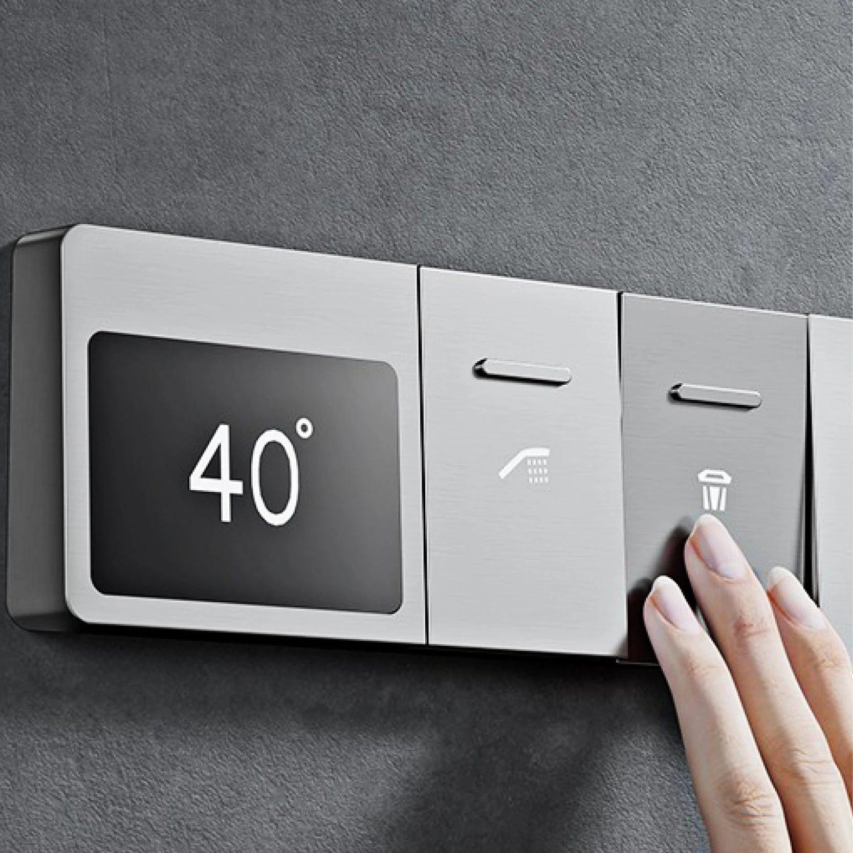 Luxury gun gray brass LED digital display shower system with wall mounted design, simple bathroom faucet for hot and cold water