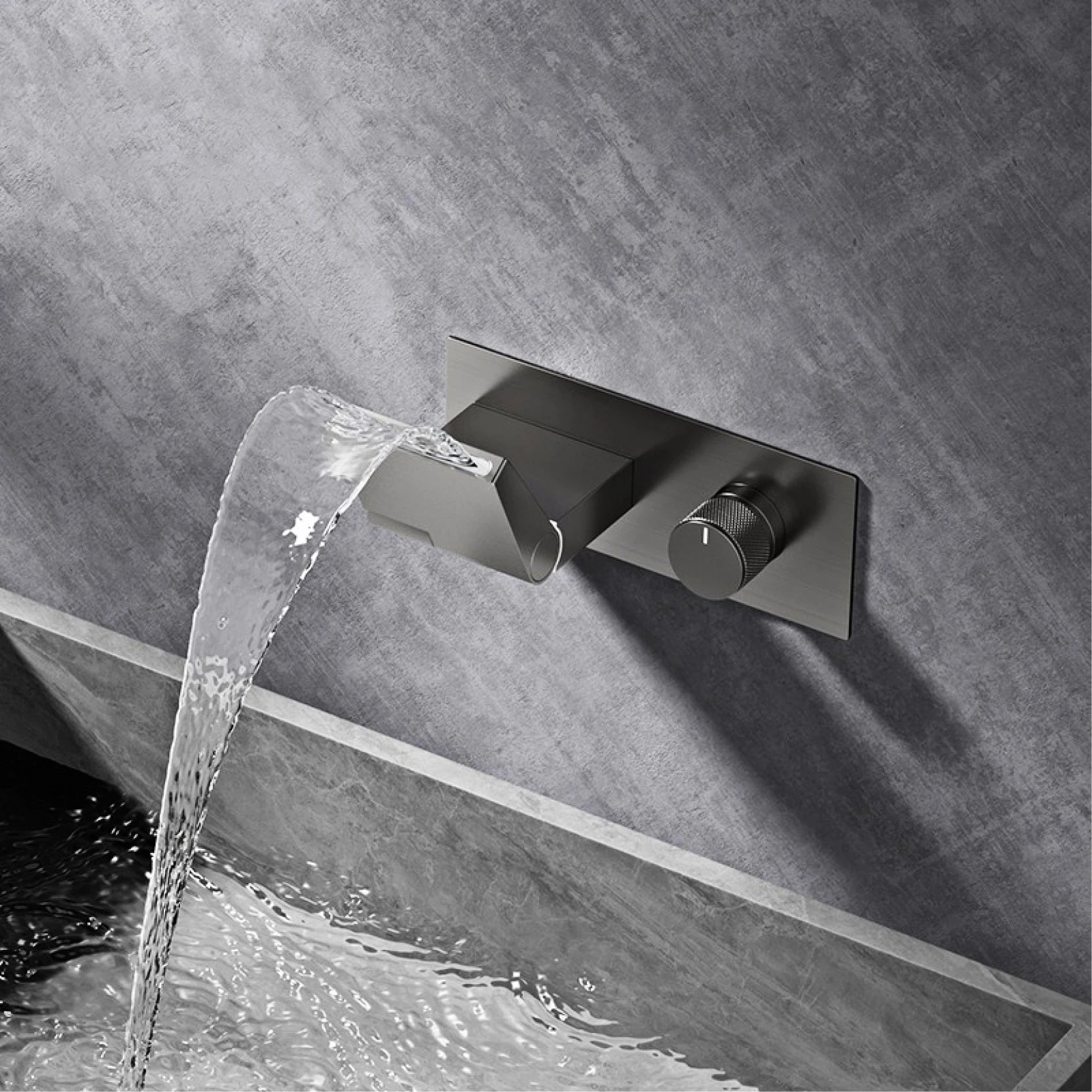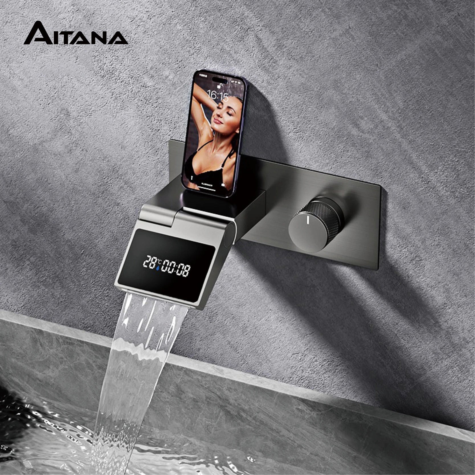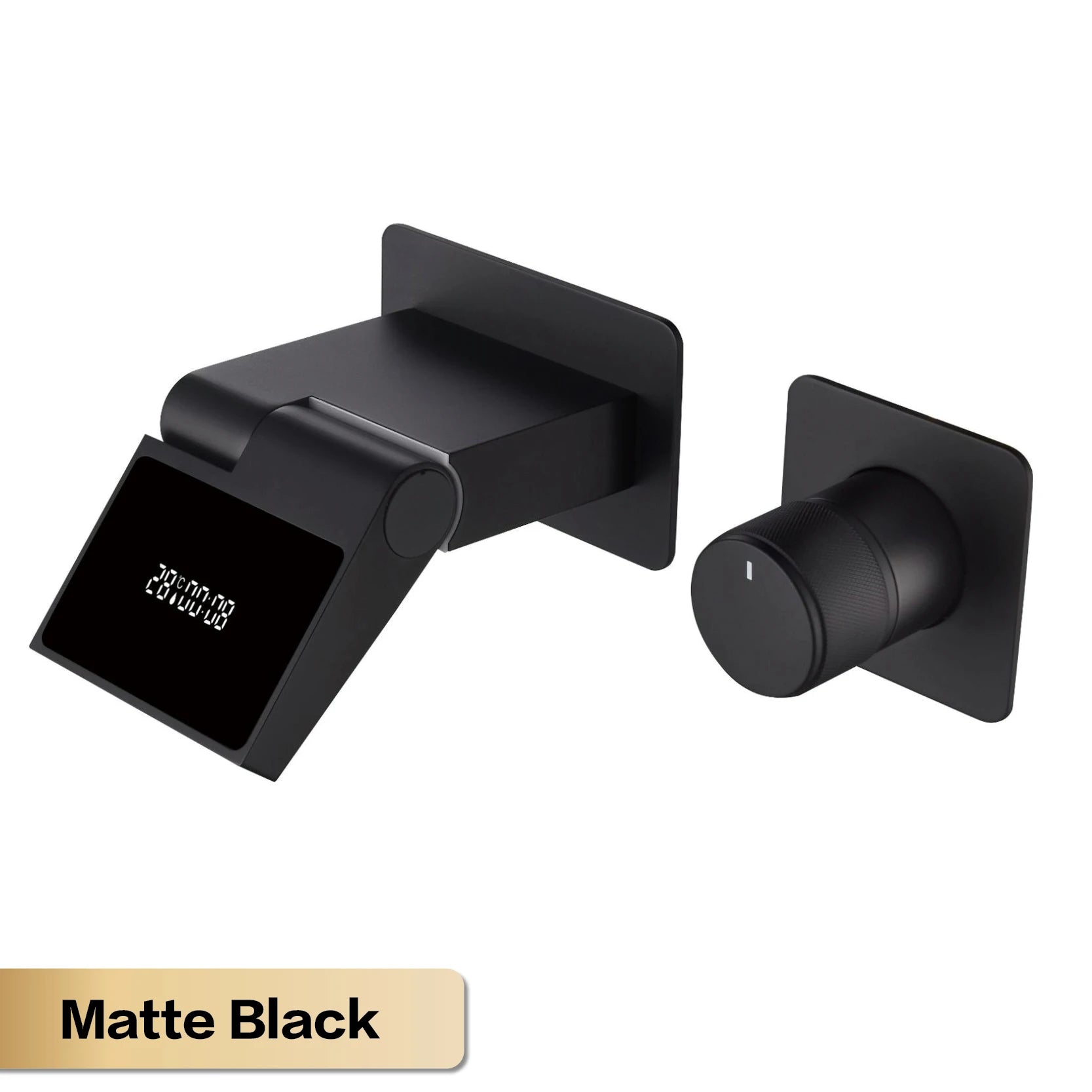 Luxury gun gray brass wall mounted bathroom faucet with LED digital display Single handle hot & cold water embedded bathroom Tap