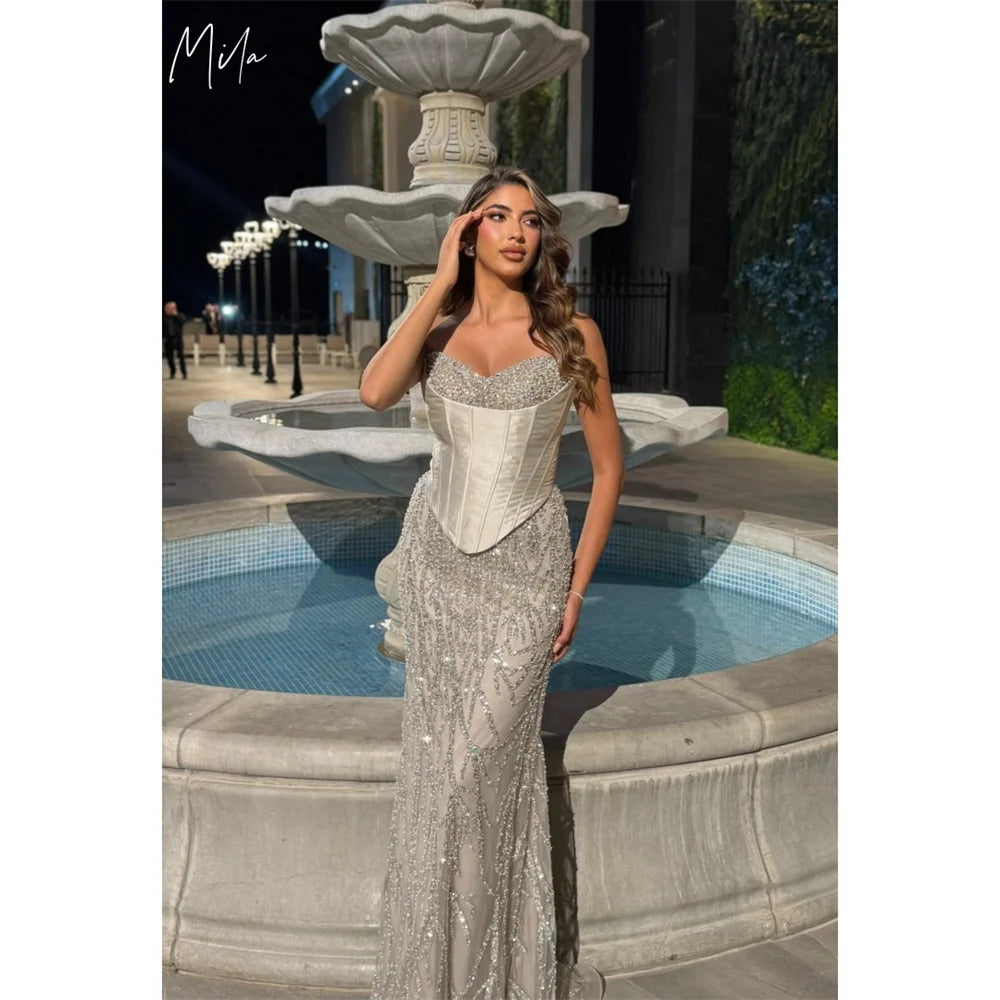 Mila Strapless Customized Gray Evening Dresses Sleeveless Back Lace-Up Prom Dress 2025 Floor-Length Wedding Party Formal Gowns