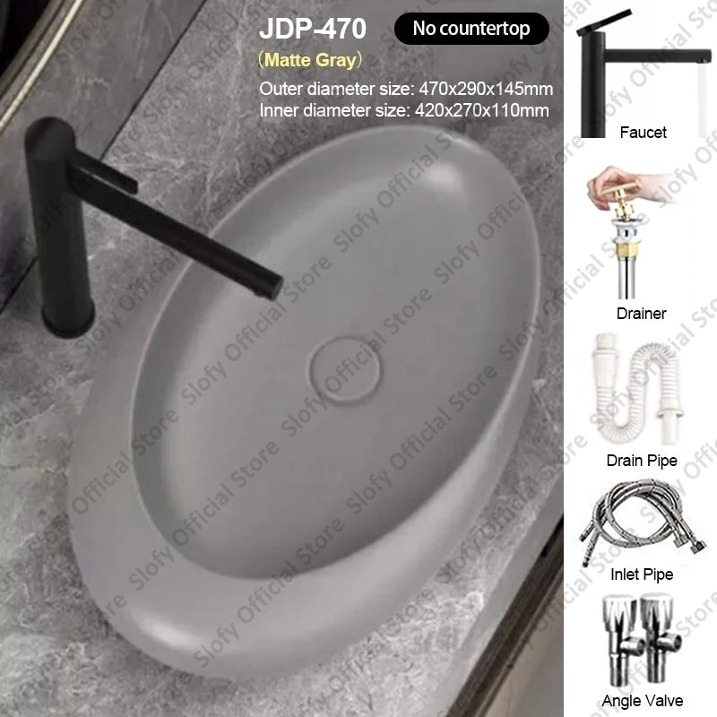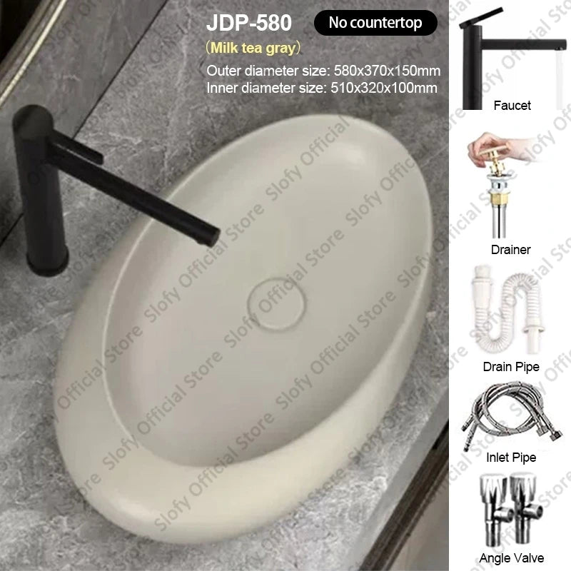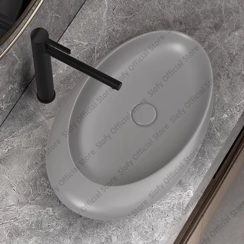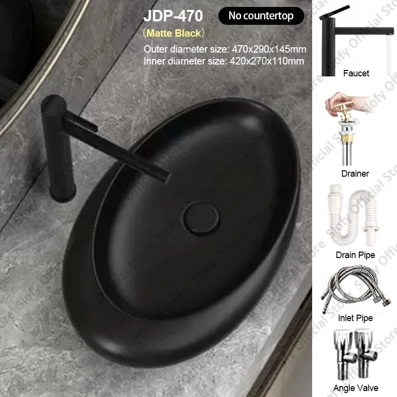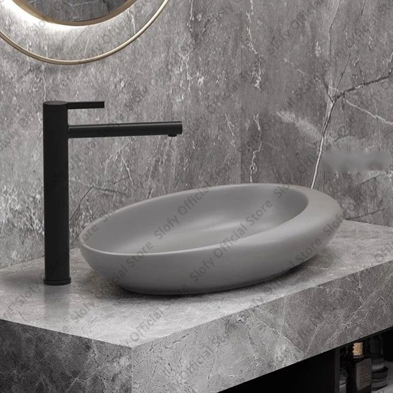 Nordic-style Hotel Countertop Basin Fashionable Art Bathroom Sink Egg-shaped Ceramic Sinks Various Styles Home Balcony Washbasin