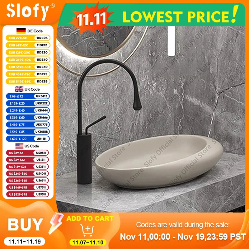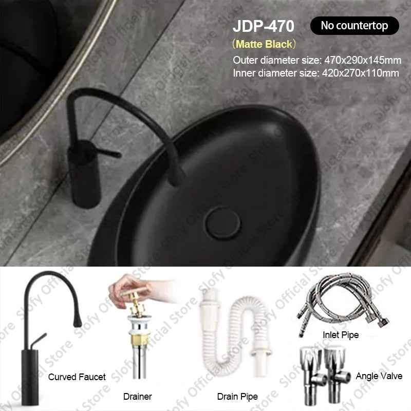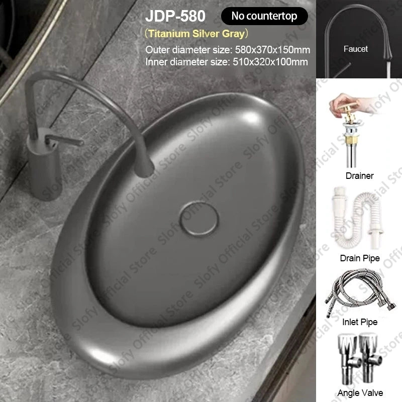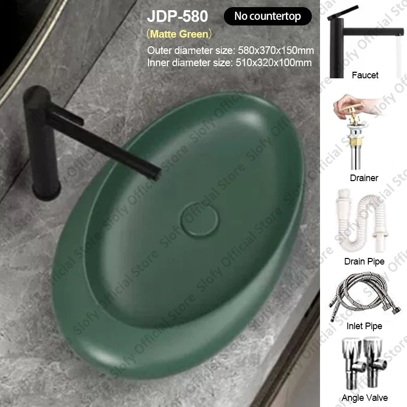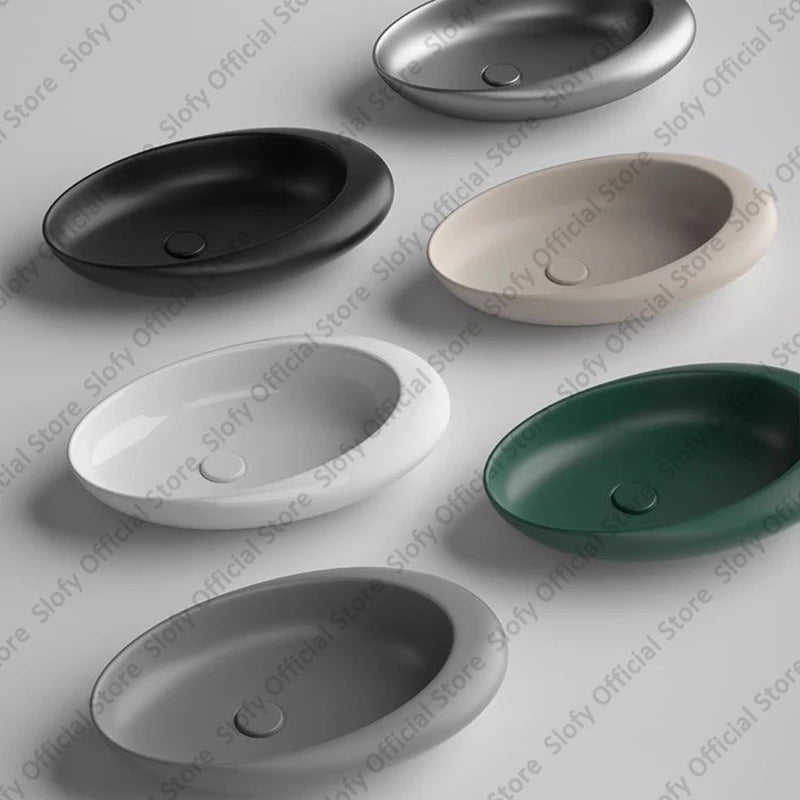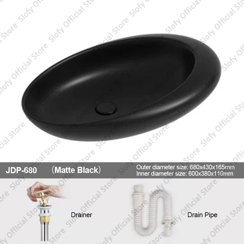 Nordic-style Hotel Countertop Basin Fashionable Art Bathroom Sink Egg-shaped Ceramic Sinks Various Styles Home Balcony Washbasin