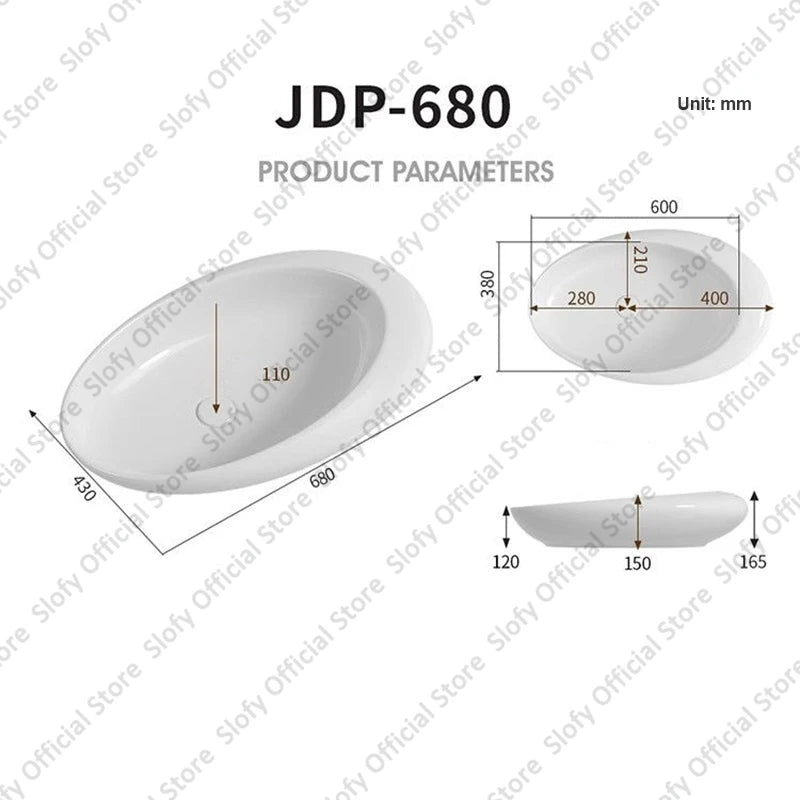 SPECIFICATIONSBasin Shape: OvalBrand Name: SlofyCapacity: 9LFaucet Mount: No HoleHigh-concerned chemical: NoneHigh-quality materials: The glaze surface is smooth and brightHigh-temperature manufacturing:...
