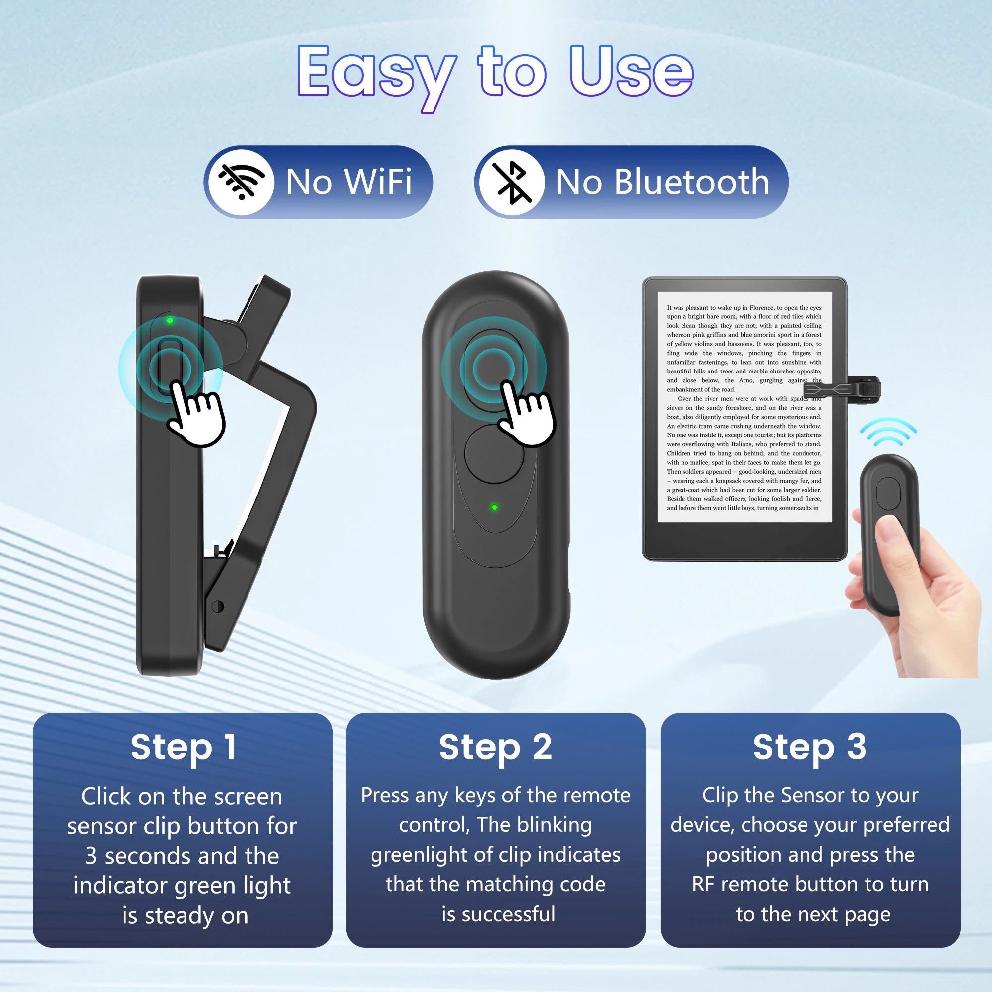 Page Turner for Kindle Paperwhite Kobo eReader Automatic Page Flipping Phone Camera Video Record Page Turner Remote Control