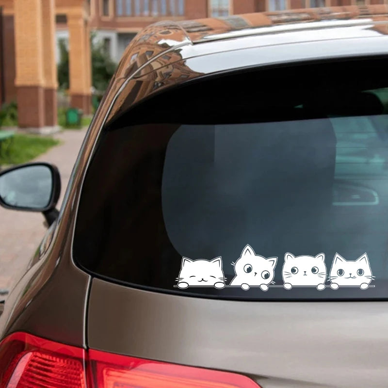 Peeking Cat Vinyl Sticker Car Window Bumper Decoration, Halloween Cats Decals Fur Kitten Laptop Stickers for Apple MacBook Decor