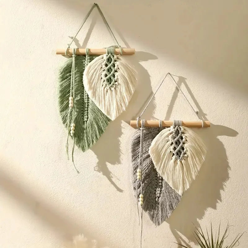 Small Macrame Wall Hanging Boho Woven Leaf Macrame Tapestry Wall Art for Bedroom Home Room Decor GIft for Women Girls
