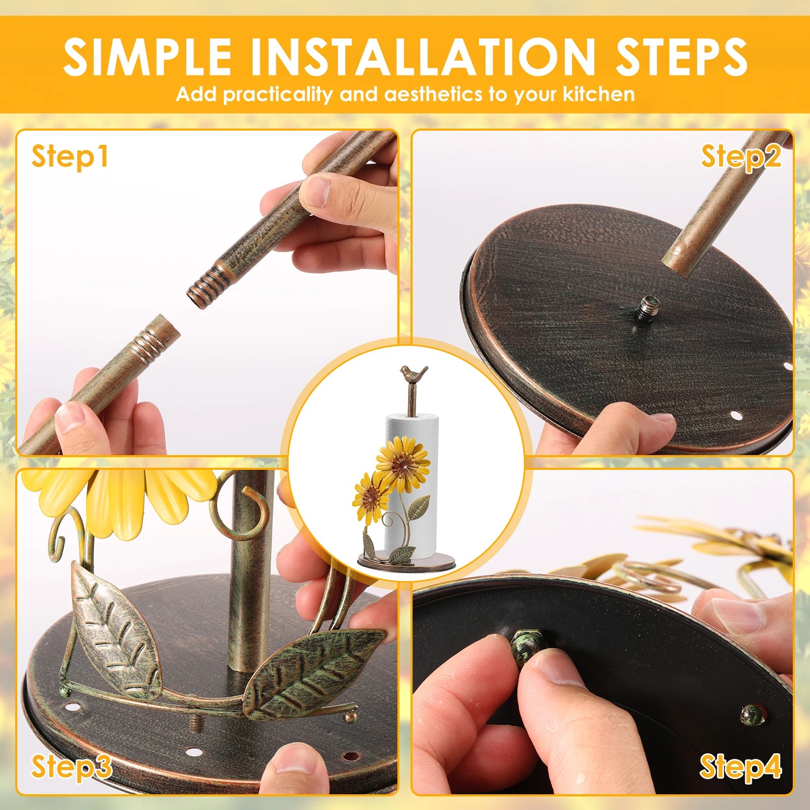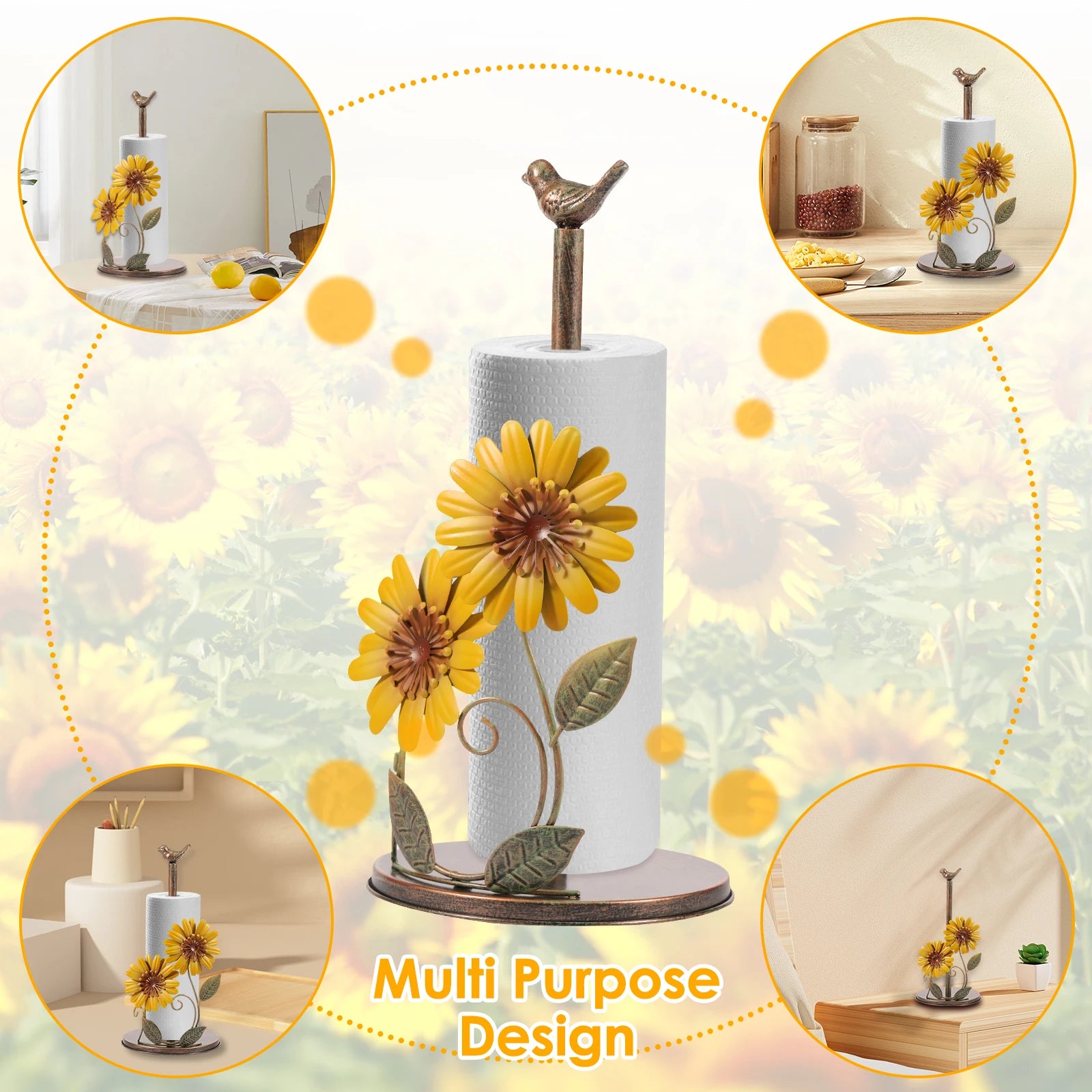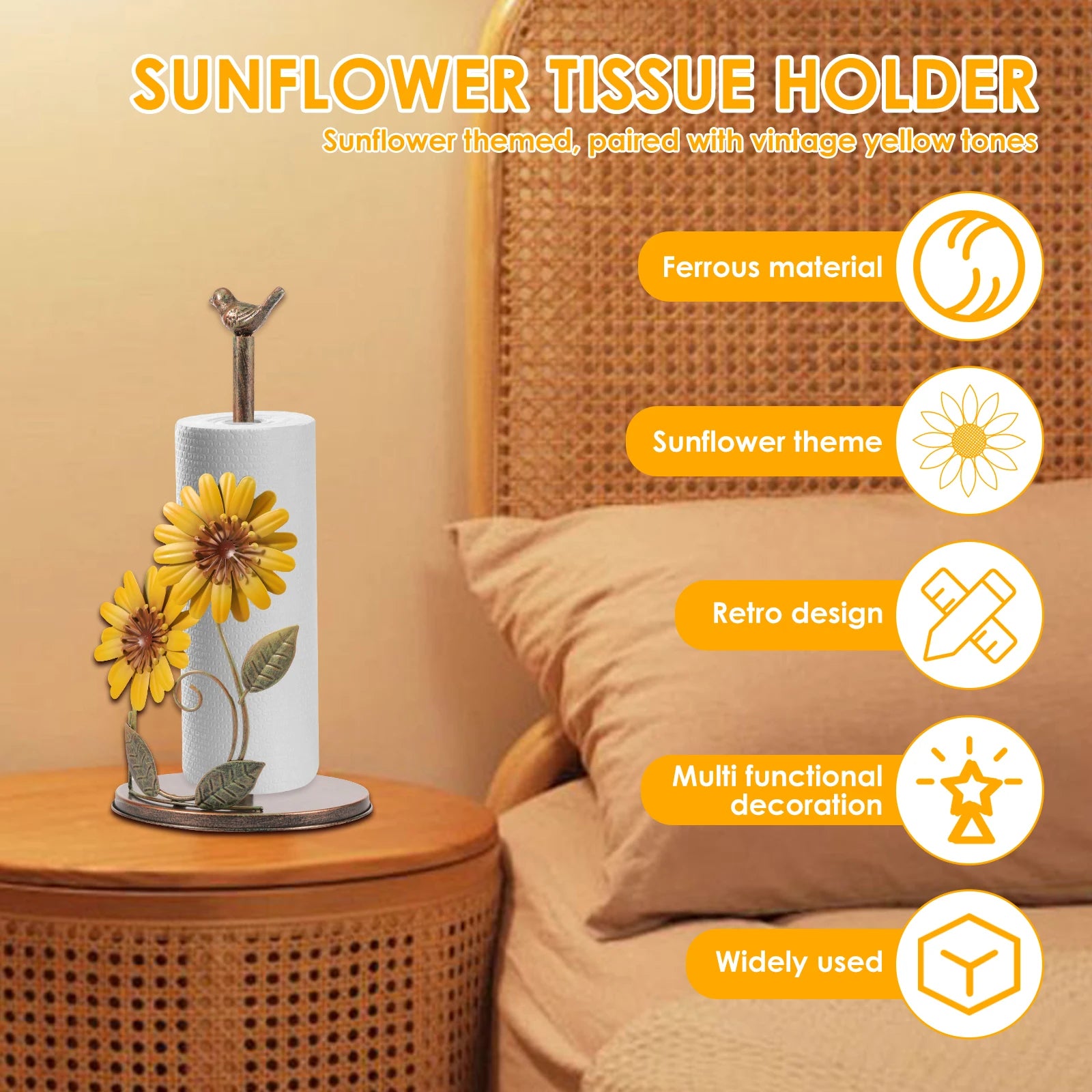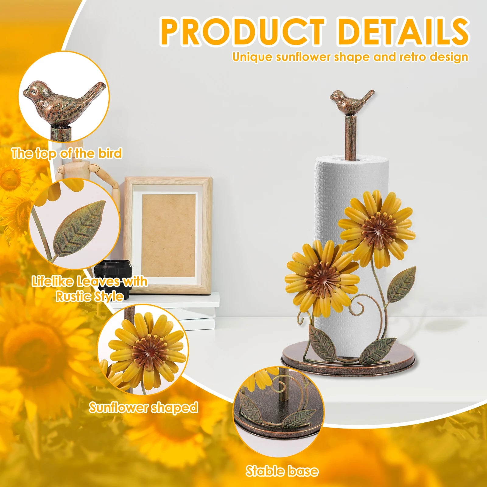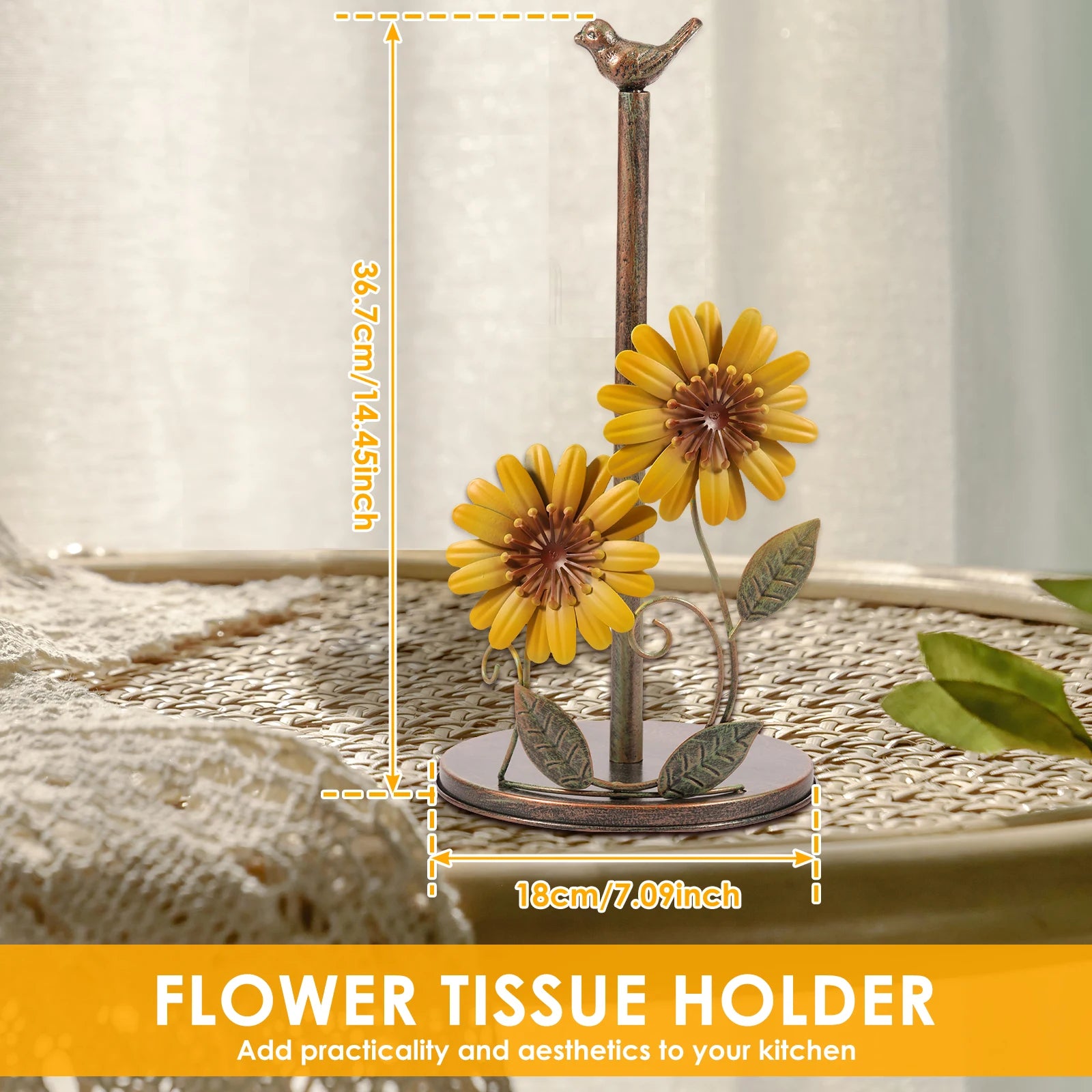Sunflower Iron Roll Paper Towel Holder Bathroom Tissue Vertical Stand Kitchens Toilet Storage Countertop Accessories