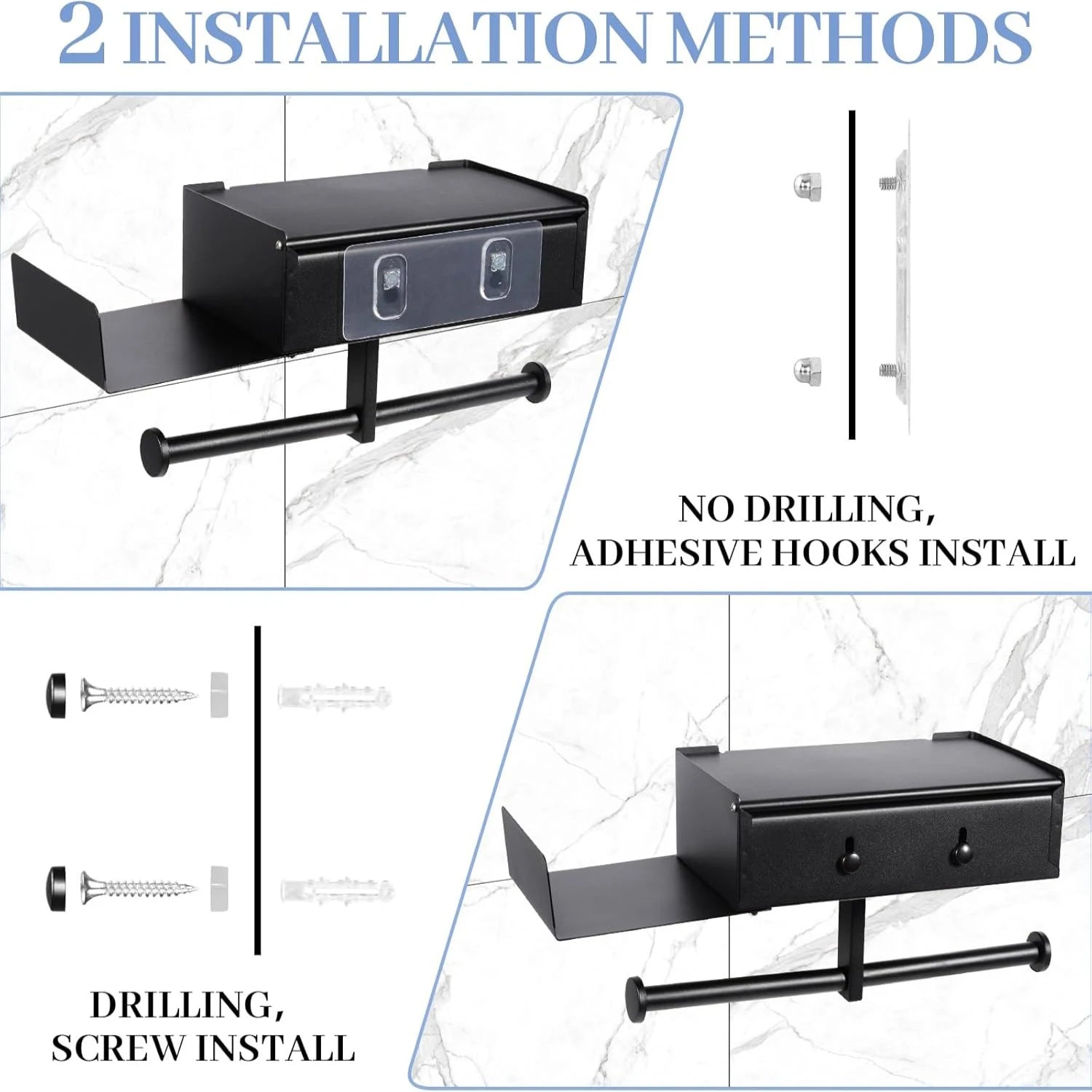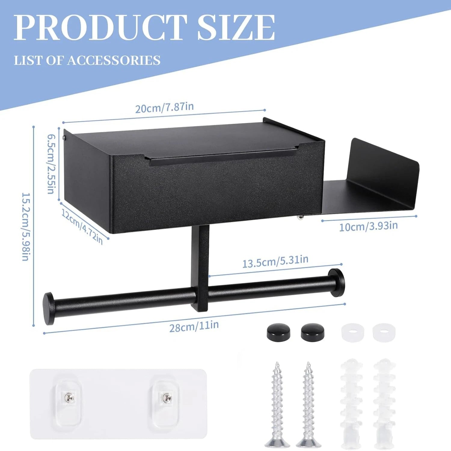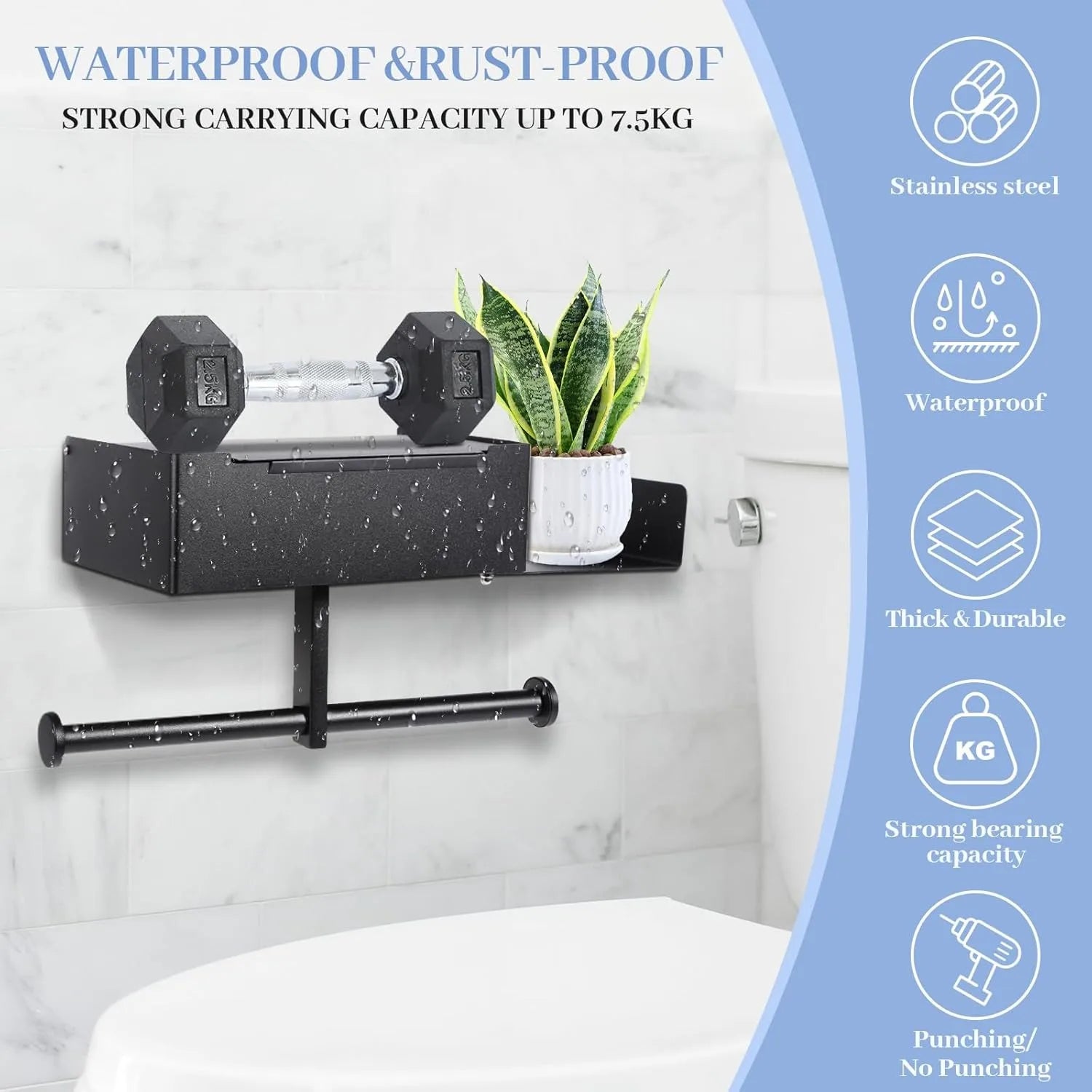 Toilet Paper Holder with Shelf Stainless Steel Paper Box Wall Mounted Wipes Holder for Bathroom Flushable Wipes Storage Holder