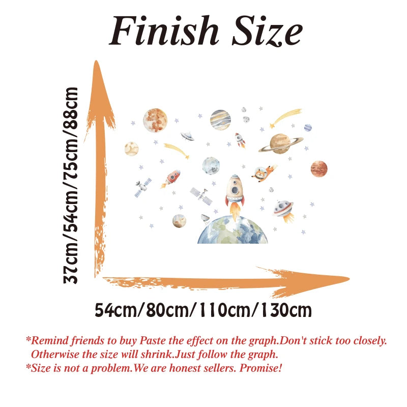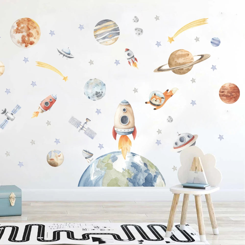 Watercolor Solar System Space Wall Sticker Baby Nurery Kids Room Planets Rockets Stars Moon Wall Decal Bedroom Playroom Decor