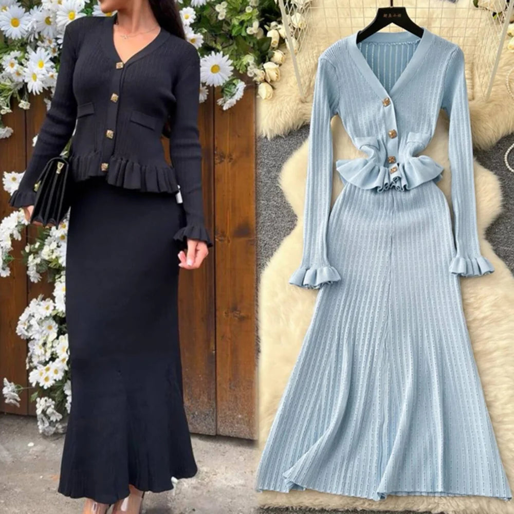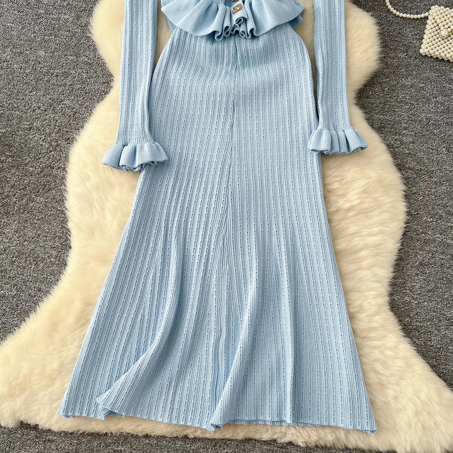 YuooMuoo Brand Fashion One Piece Maxi Dress 2025 Woman Luxury V-neck Rhinestone Slim Waist Ruffled Knitted Dress Party Vestidos