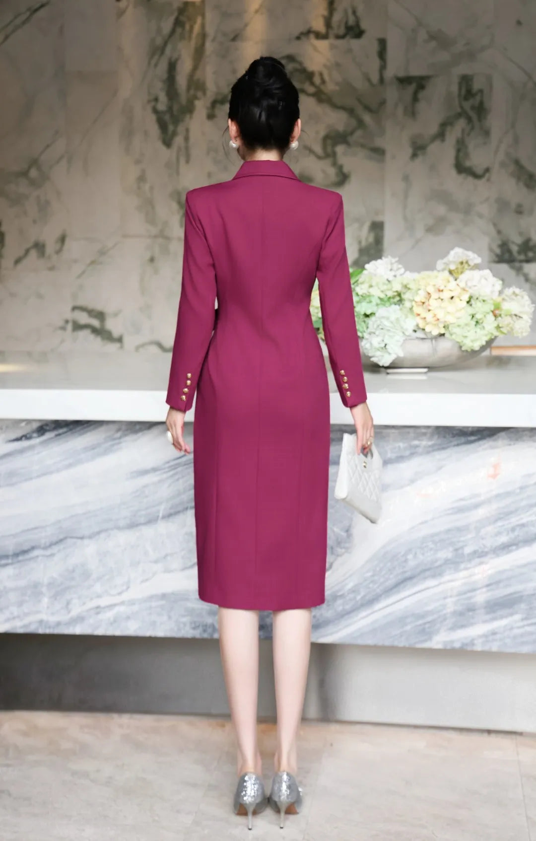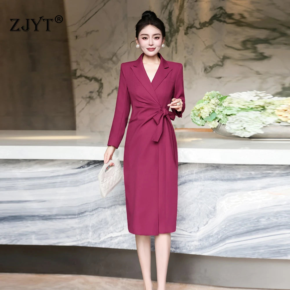 ZJYT Elegant Ladies Notched Collar Long Sleeve Autumn Dresses for Women Lace Up Straight Office Work Wear Female Vestidos 2025